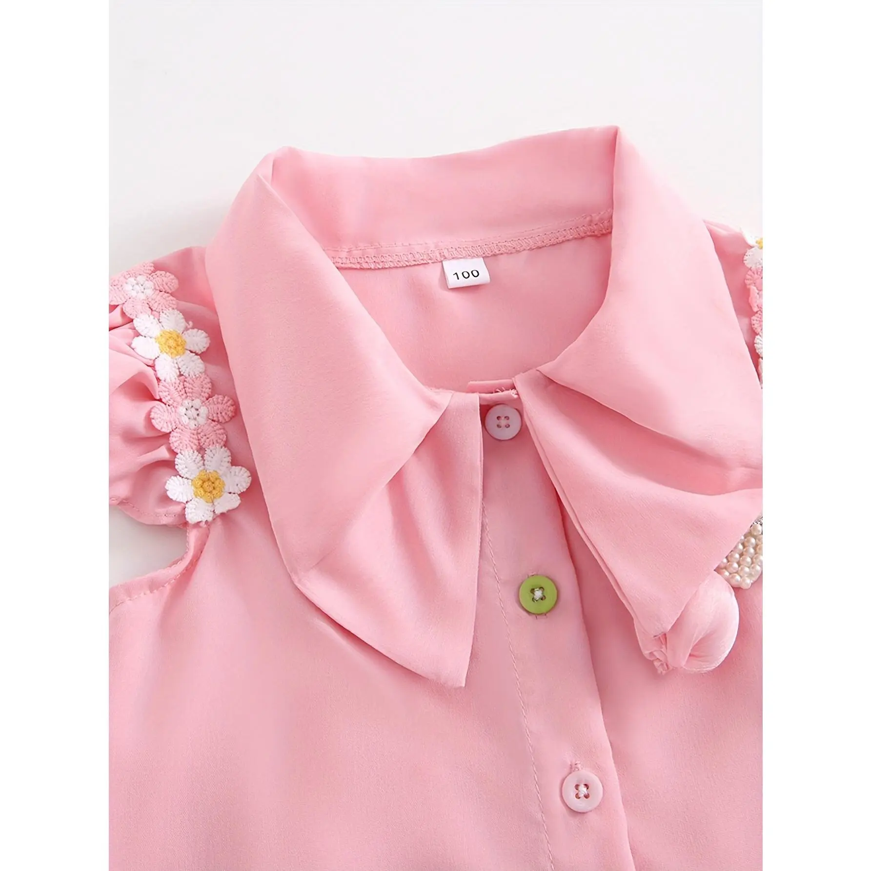 Material: PolyesterTops Composition: 100% PolyesterBottoms Composition: 100% PolyesterDetails: AppquePattern: FloralApplicable People: GirlsSheer: NoFabric: Non-StretchType: PeplumSeason: AllOperation Instruction: Hand wash or professional dry cleanStyle: ElegantFit Type: RegularApplicable Age Group: Over 3 Years OldWeaving Method: WovenItem ID: AC10201944Origin: Zhejiang,China
