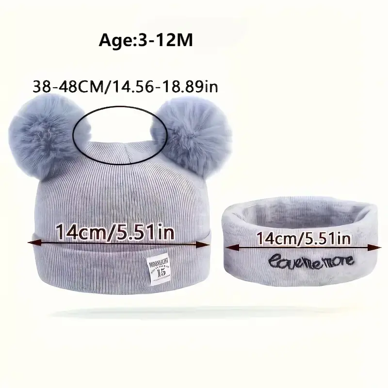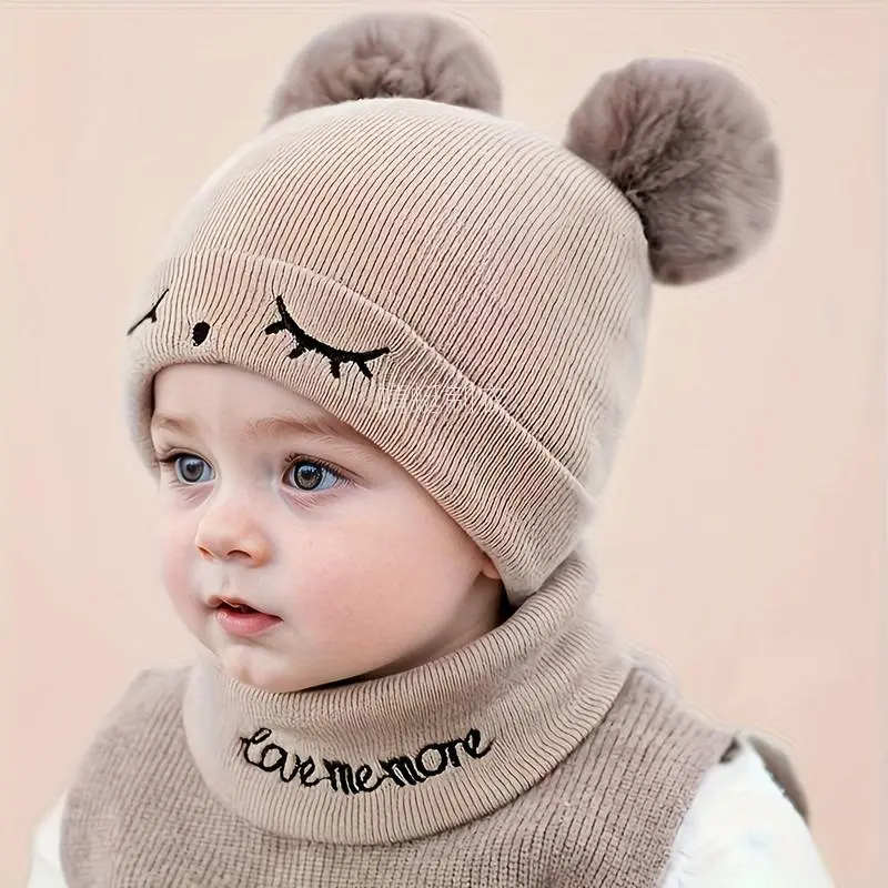 NewNewChildren'S Comfortable Knitted Pom-Pom Hats - Hand Washable Stretch Fabric, Featuring Letter Design, Warm Ear Cover Hat.