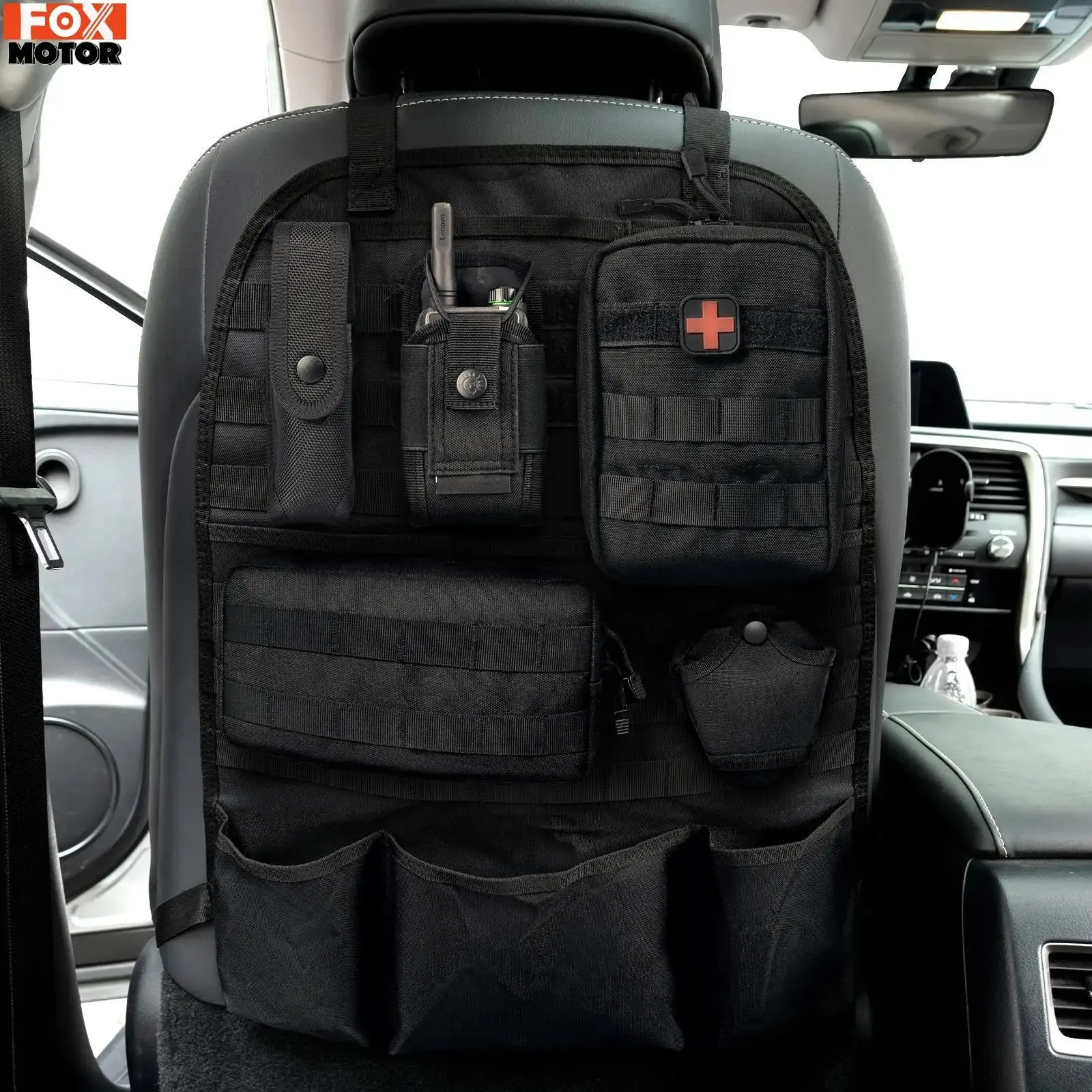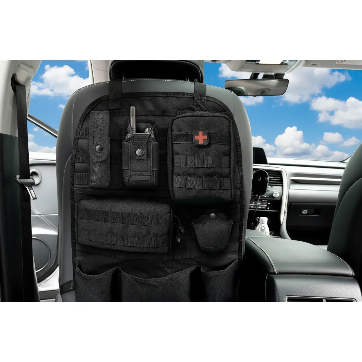 Tactical back seat organizer for cars, trucks, and SUVs. Multi-pocket
