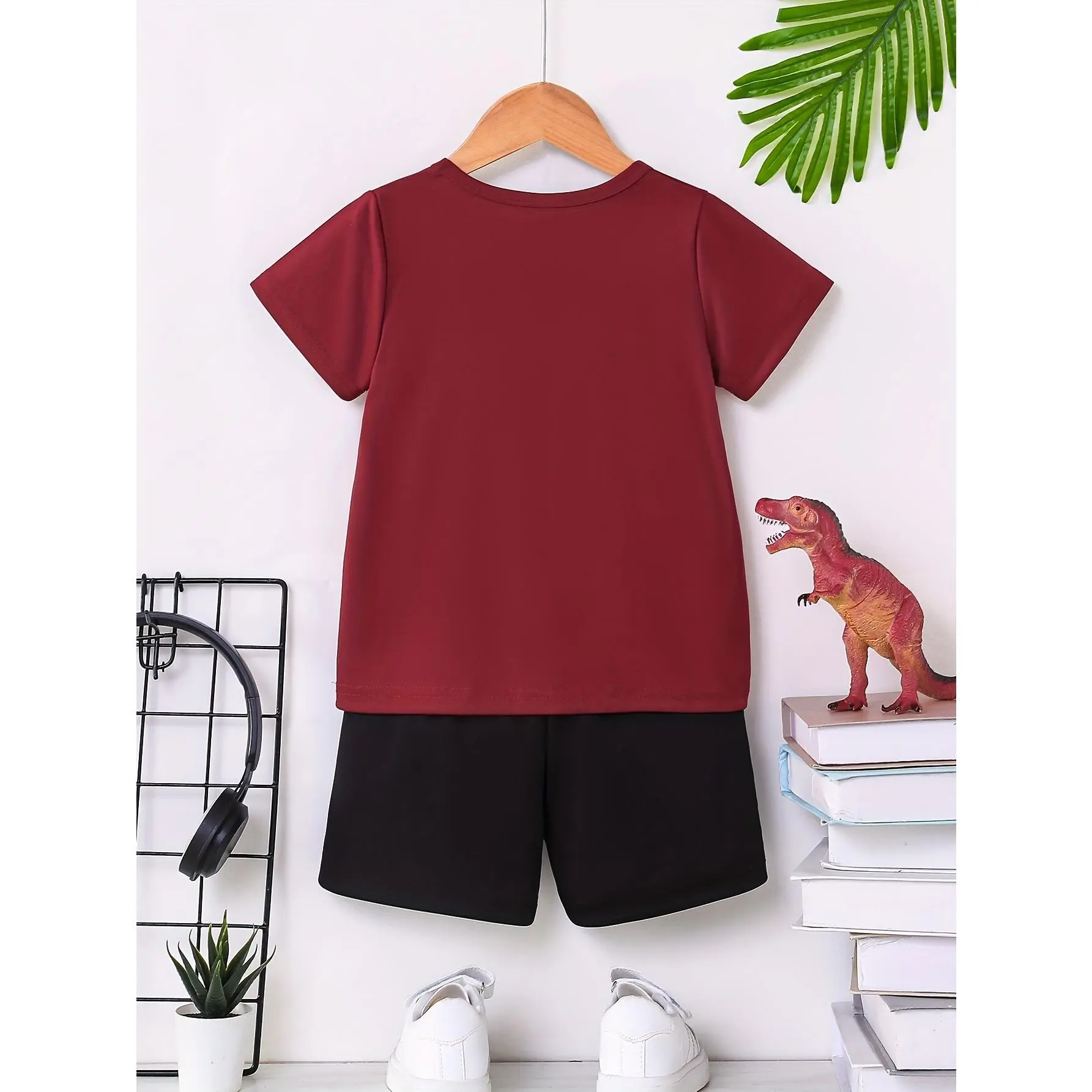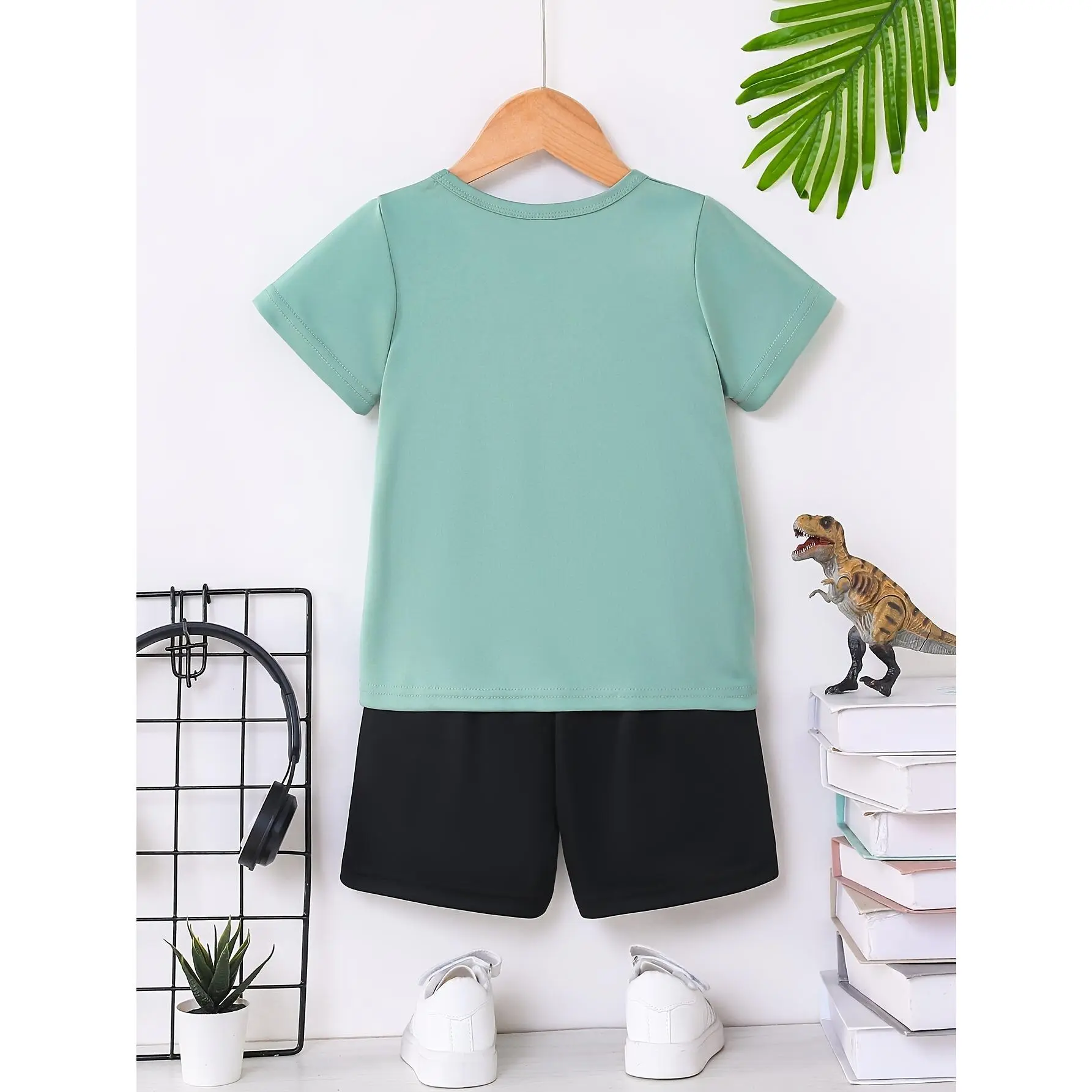 Material: PolyesterTops Composition: 100% PolyesterBottoms Composition: 100% PolyesterSleeve Type: Regular SleeveSleeve Length: Short SleeveBottom Type: ShortsPattern: AnimalsSheer: NoTop Type: T-shirtFabric: Slight StretchPlacket Type: PulloversCollar Style: Crew NeckContour: ConventionalSeason: SummerOperation Instruction: Hand wash,do not dry cleanStyle: CasualApplicable Age Group: 12 and underFit Type: RegularWeaving Method: Knit FabricPrinting Type: Positioning PrintingApplicable People: BoysItem ID: EN1313488Origin: Zhejiang,China
