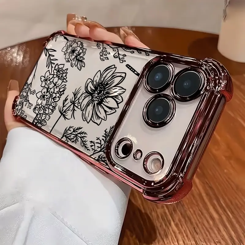 A Design Featuring a Black And White Sunflower Pattern Magnetic Phone Case Shockproof for iPhone 17 Pro Max Air 16 16e 15 14 Plus 13 12 11 X XS Pattern MagSafe Acrylic Back TPU Edges Drop-Proof Lightweight Cover Gift 2D printing