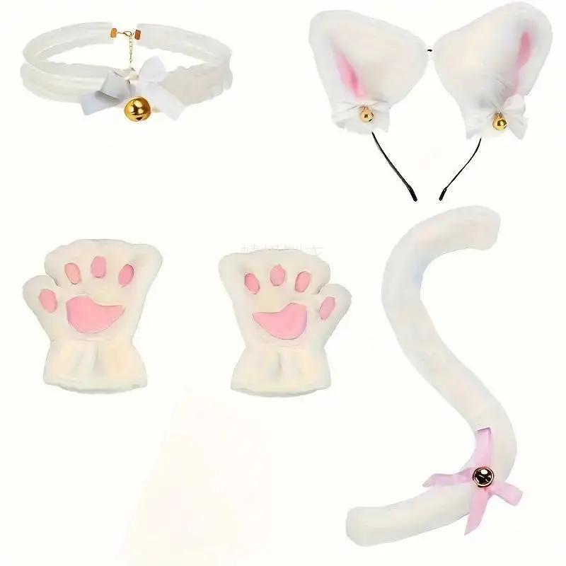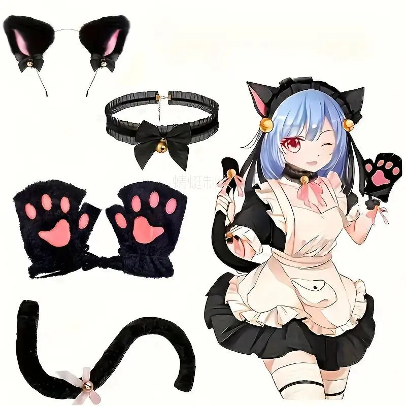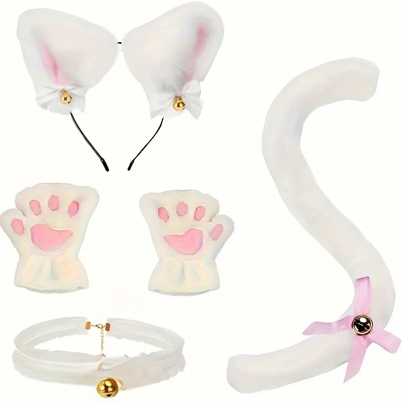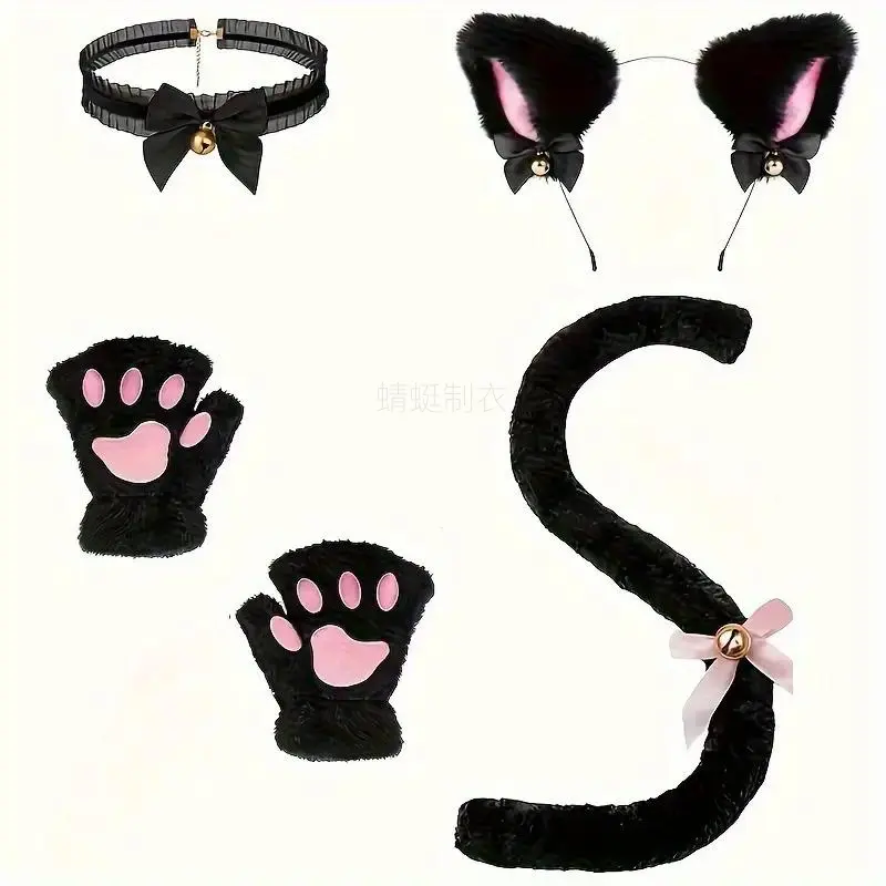 NewNew5pcs Cute Cat Costume Set - Headband, Gloves, Collar & Tail | Black & White Polyester Animal Outfit for Halloween, Birthdays, Themed Parties | No Power Needed, Playful & Durable, Photogenic Accessories, Cat Lovers/Costume Ent