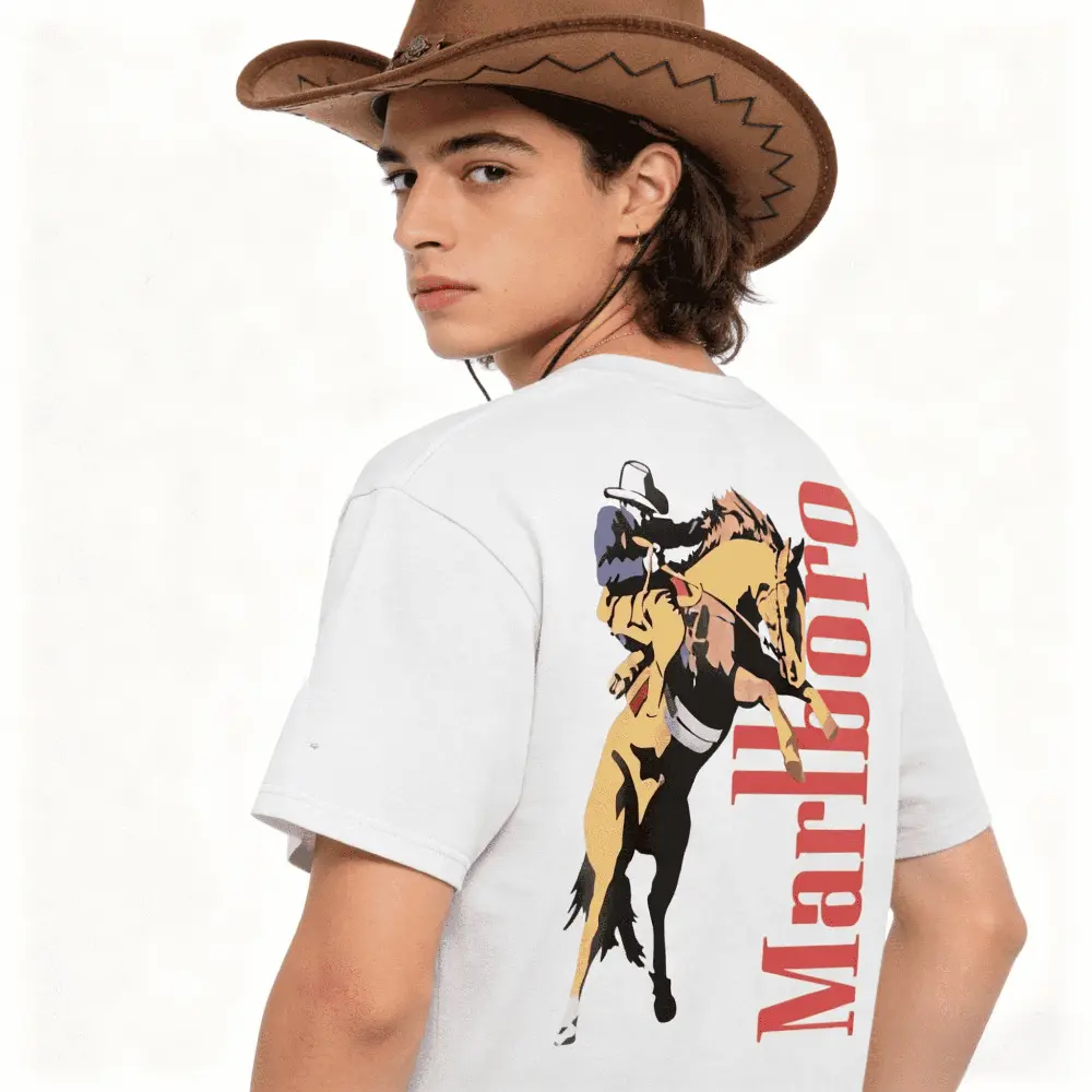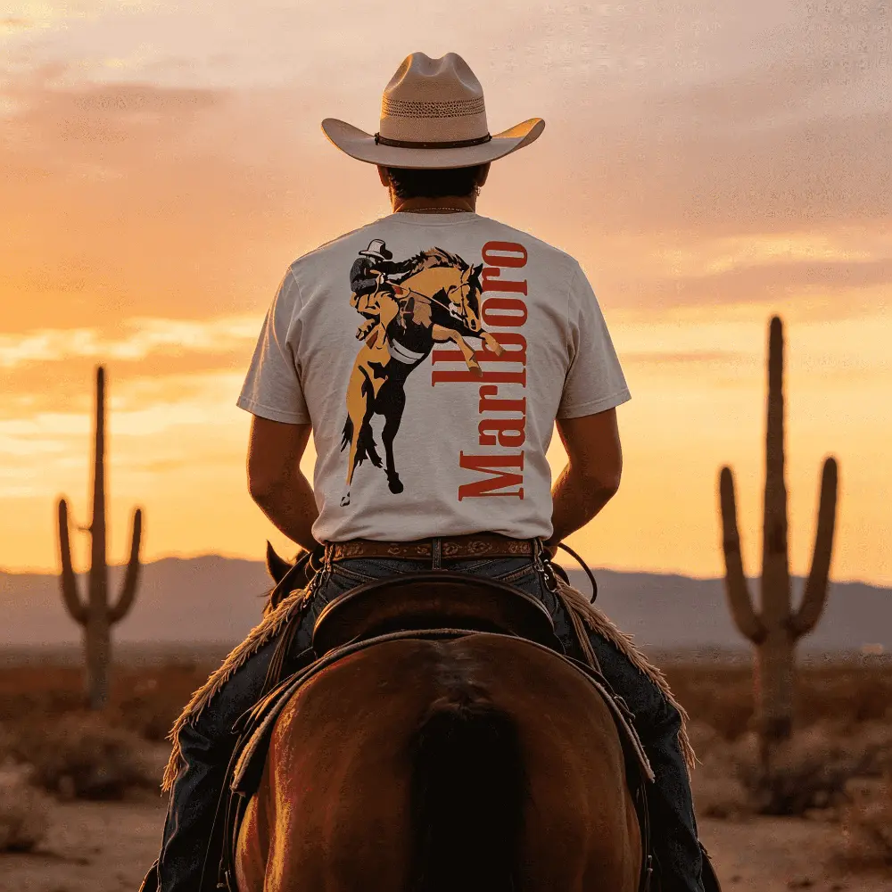 Vintage Marlboro Cowboy Wild West Shirt, Unisex Shirt, For Men, For Women,Classic Cotton Menswear, digital print street t-shirts Top Collar,Unisex T-Shirt