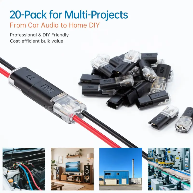 ·【High-quality materials】 Double-wire plug-in connector with locking buckle made of ABS, which provides thermal stability and durability, making the connector durable and wear-resistant. The use of high-quality, flame-retardant insulation material, modified copper, ensures a long service life and resistance to aging