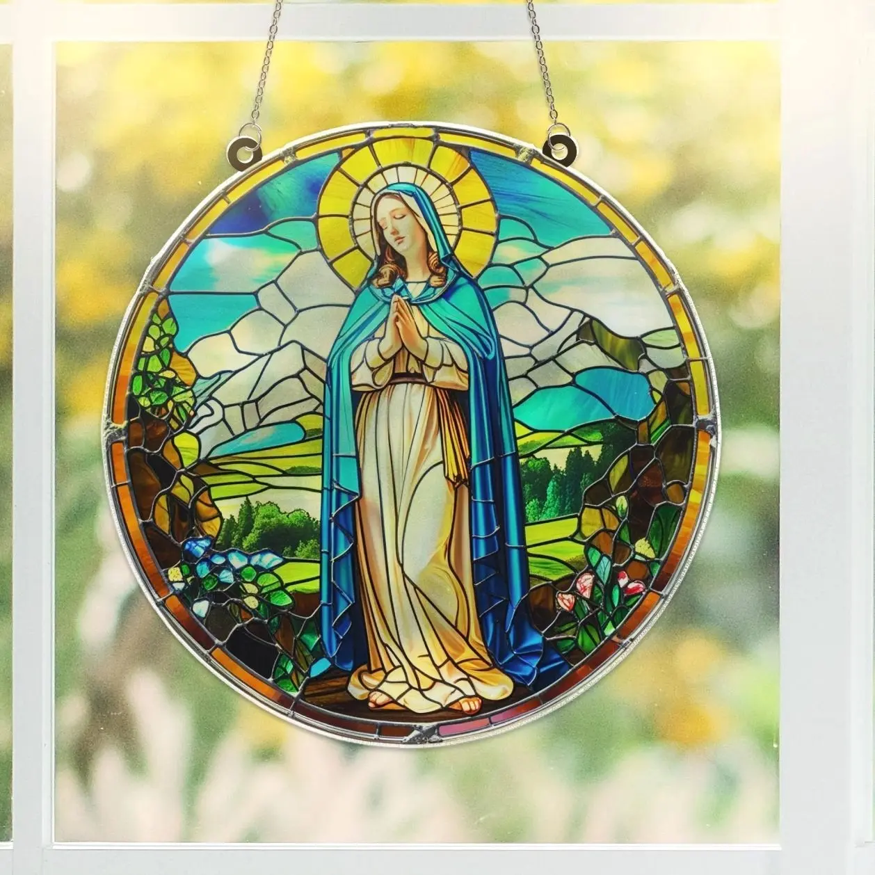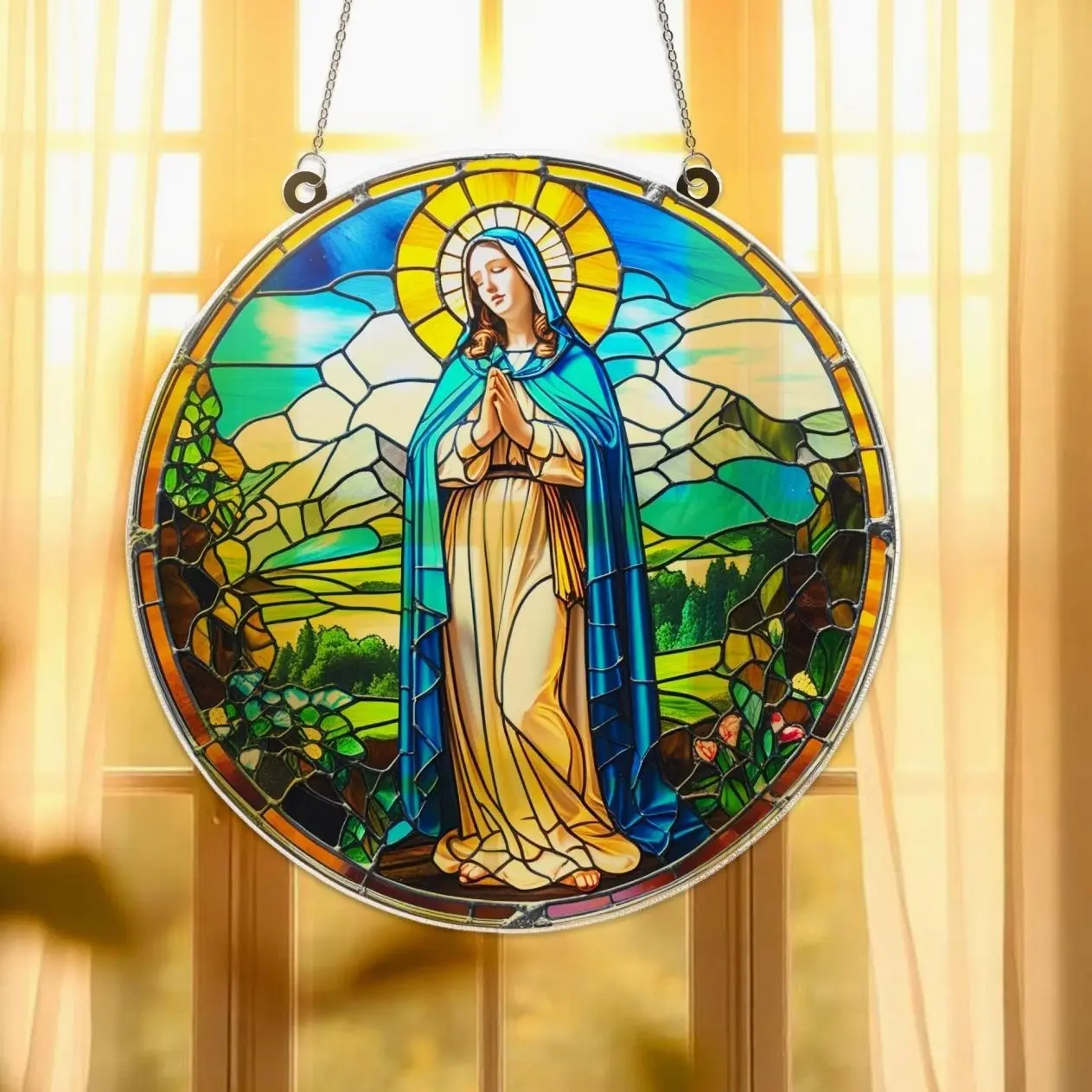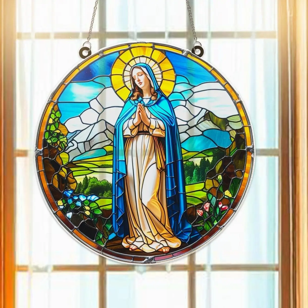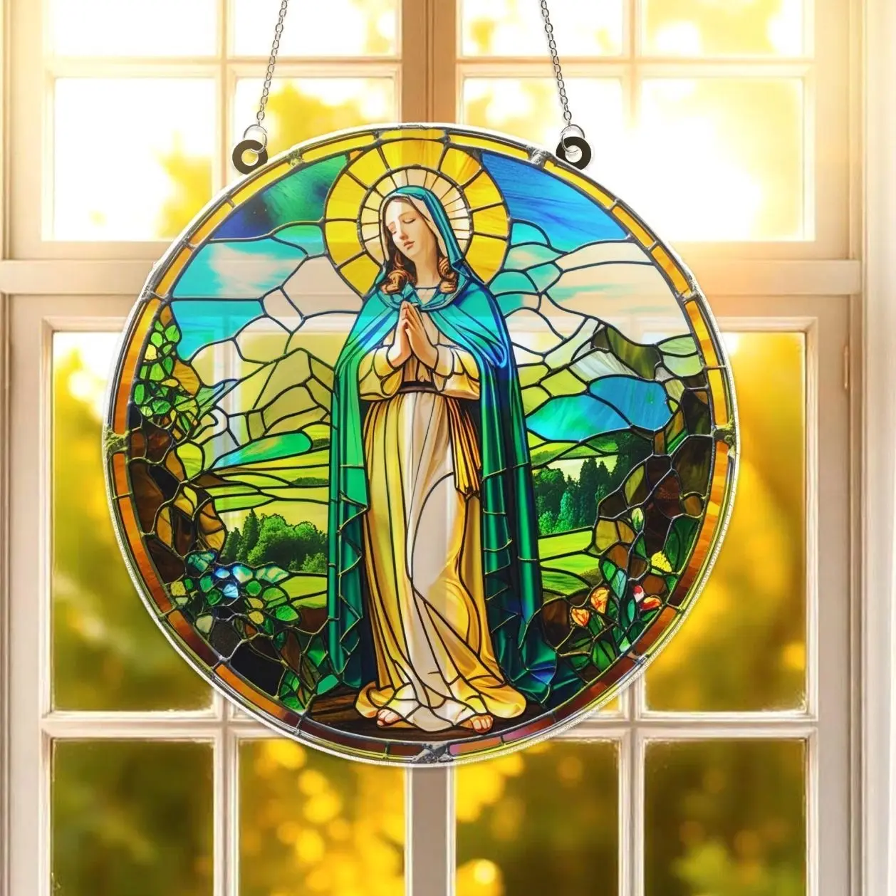 Virgin Mary Christmas Suncatcher Window Ornament, Acrylic Nativity Decor, Holy Glass Look Art, Religious Gift, Spiritual Holiday Display