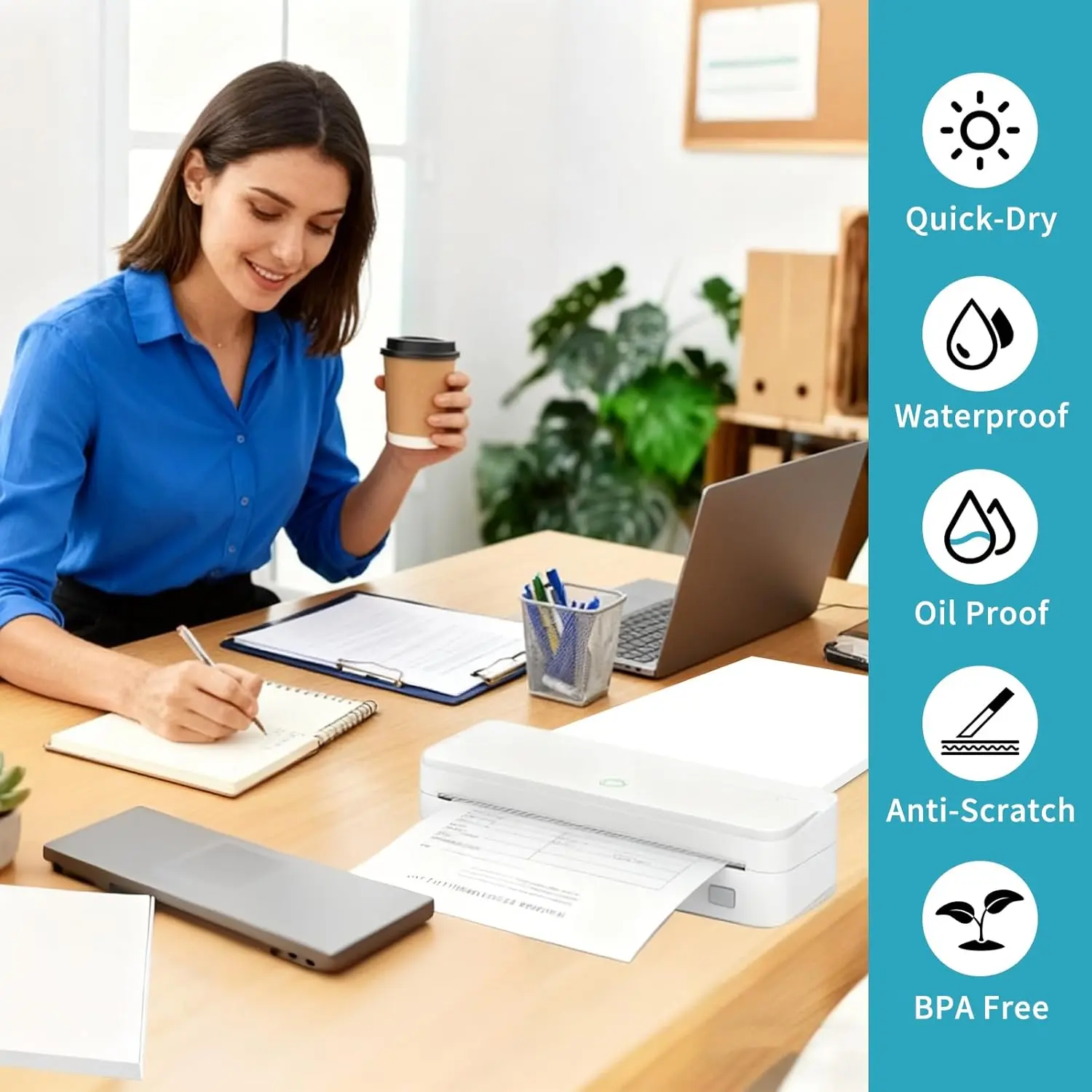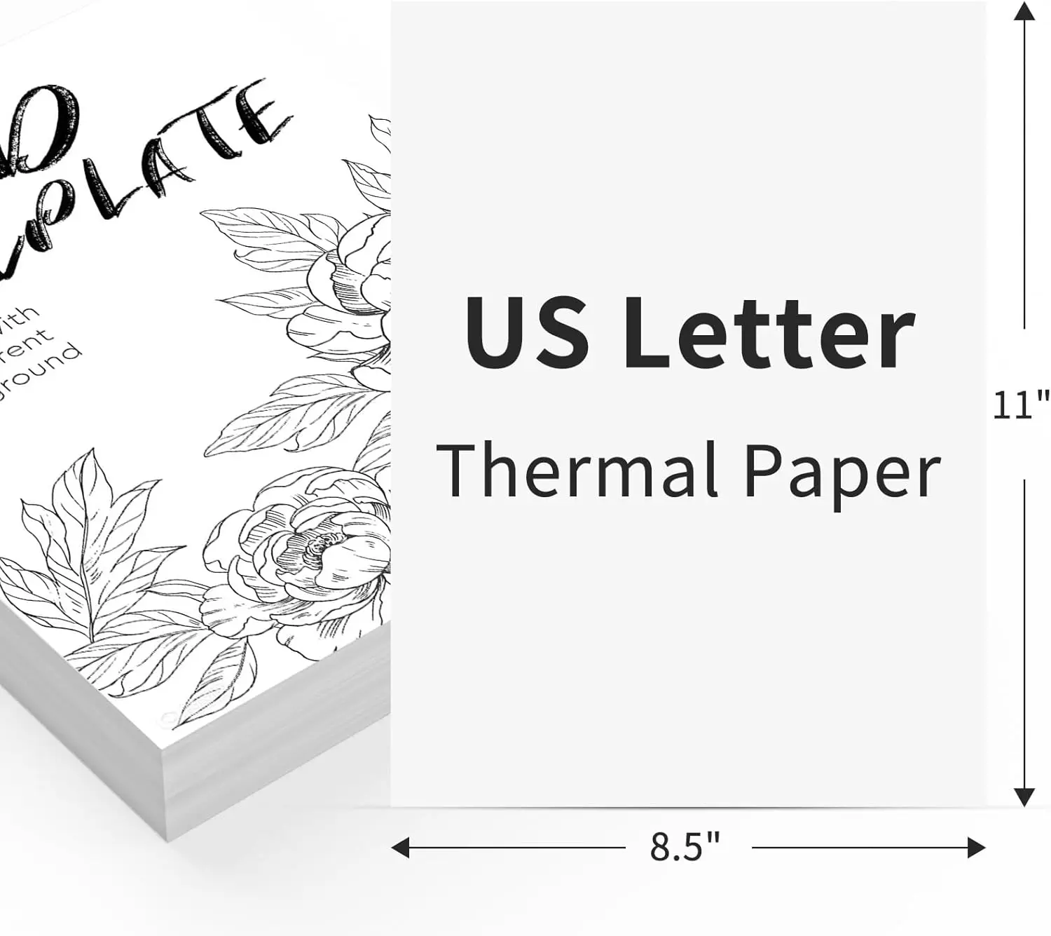 ·【Wide Compatibility】100 sheets 8.5" x 11" thermal paper, US letter size, compatible with letter-size portable thermal printers. Please Note: Not suitable for copiers, traditional inkjet, or laser printers