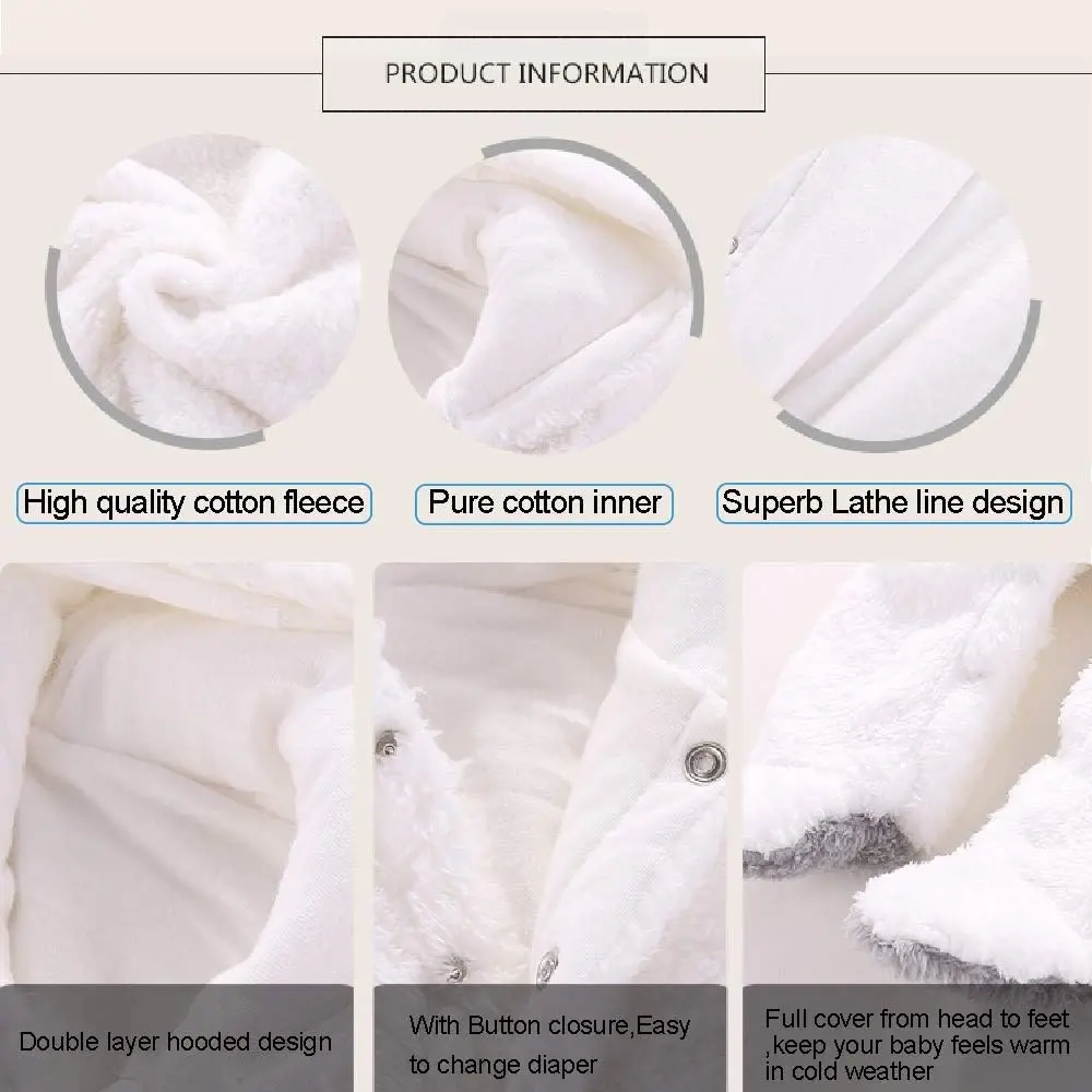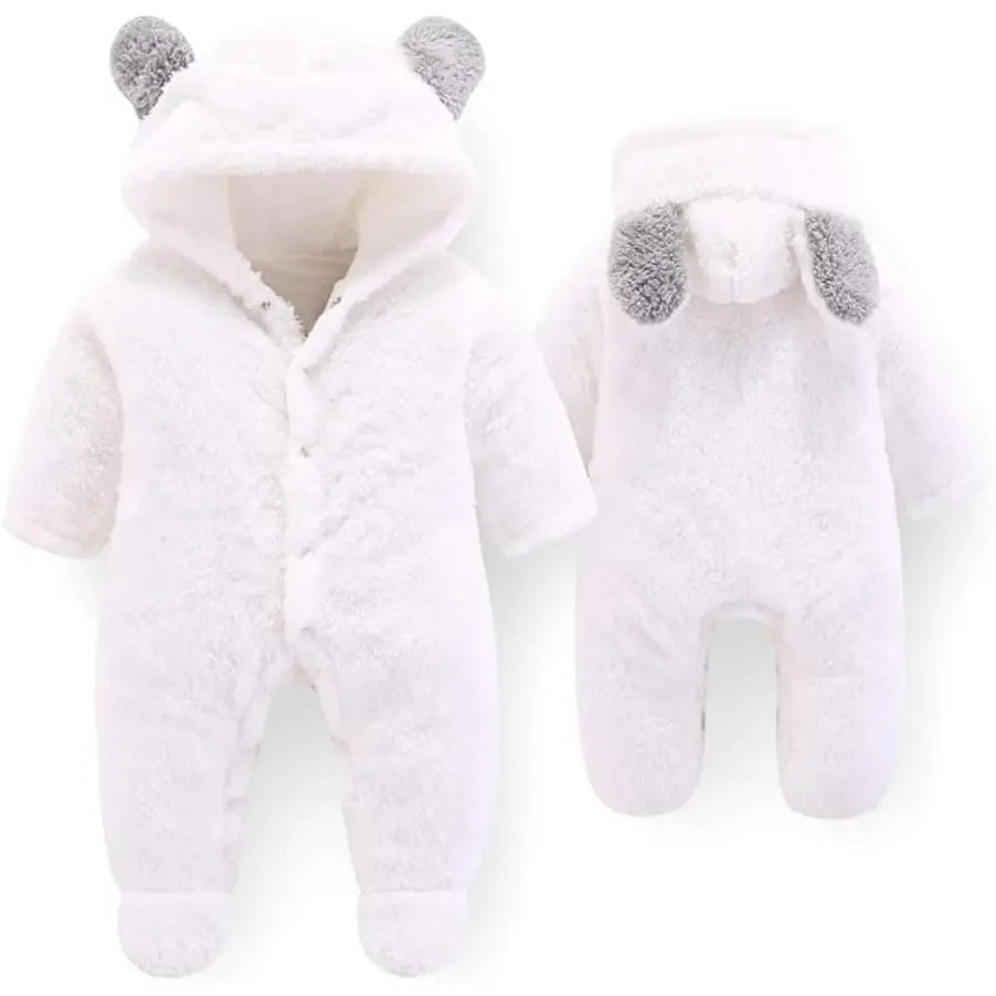 Newborn Baby Cartoon Bear Snowsuit Winter Coat Fleece Hooded Jumpsuit Romper for Girls Long Sleeve Cute Plain Design