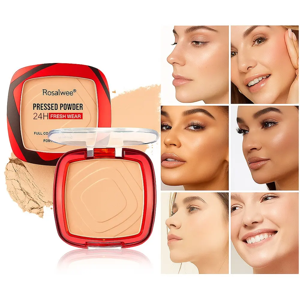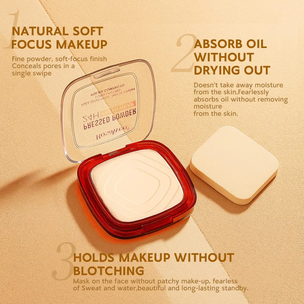 Rosalwee Long-Lasting Makeup Powder, Oil-Control Waterproof, 24h Fresh Wear, Natural Soft Focus, Setting & Touch-Up, Solid Form