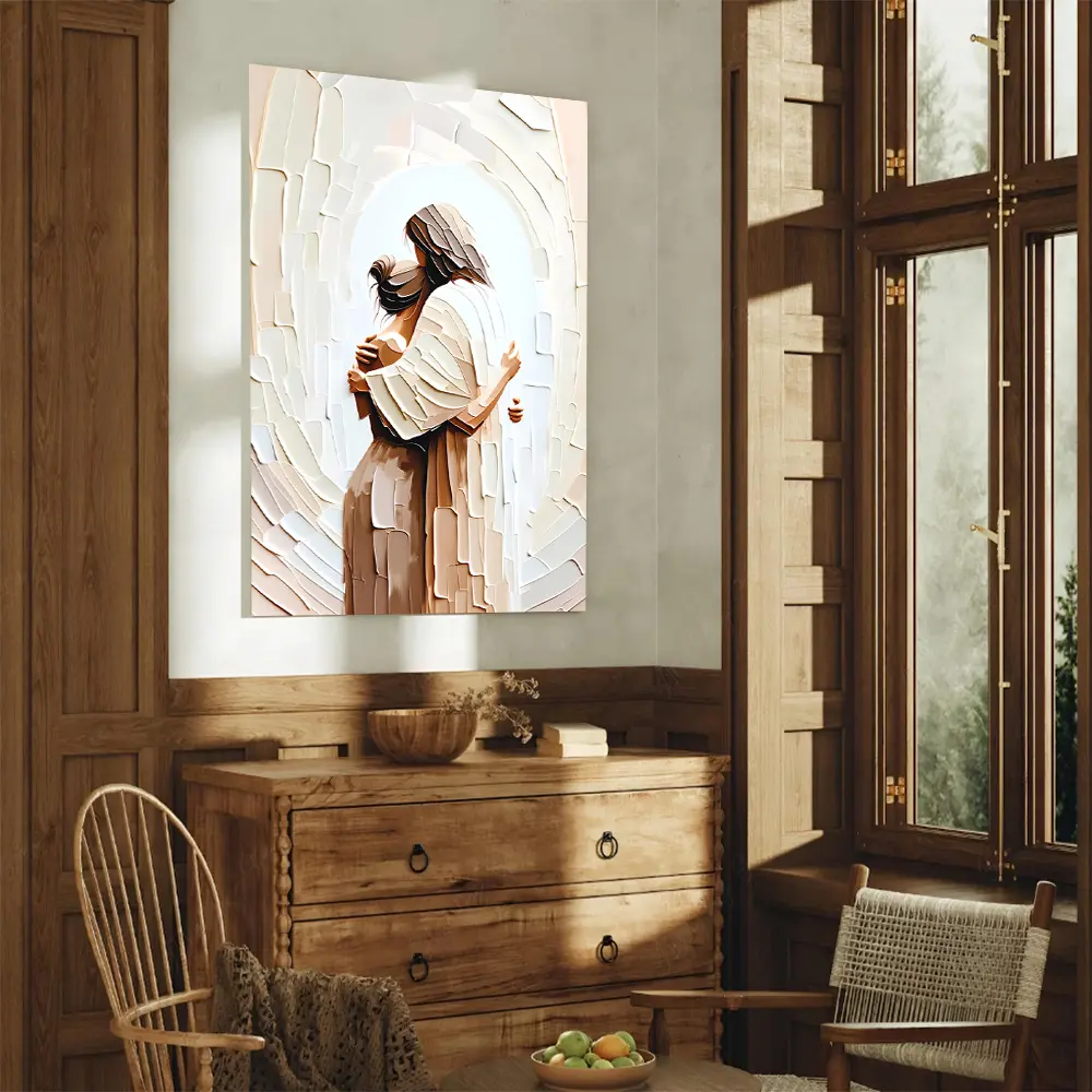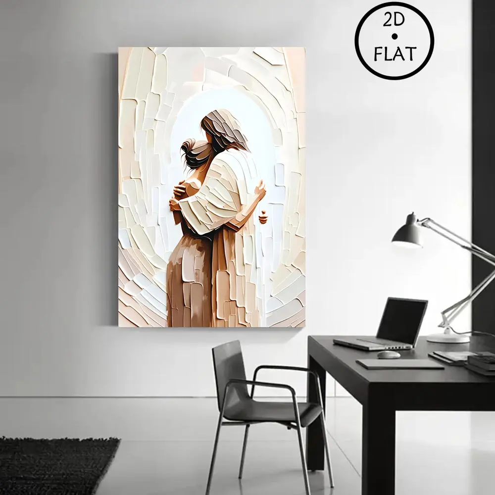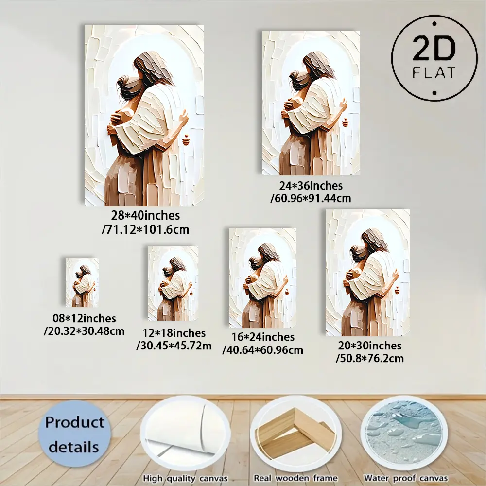 Jesus Embracing Woman Canvas Wall Art Eco-Friendly Fade-Resistant Waterproof UV-Protected Vibrant Colors Frame-Style for Church Home Living Bedroom Dining Office Prayer Room Decor Artwork