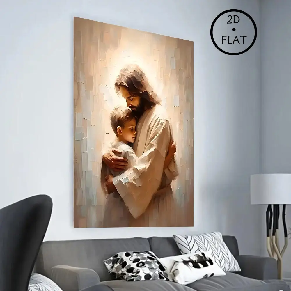 Title: 1PC 2D Flat, Not3D, Framed, Divine Embrace Canvas Print.This waterproof canvas poster is perfect for gifts.It features silver wall art with a frame included.Ideal for decorative wall frame decoration.