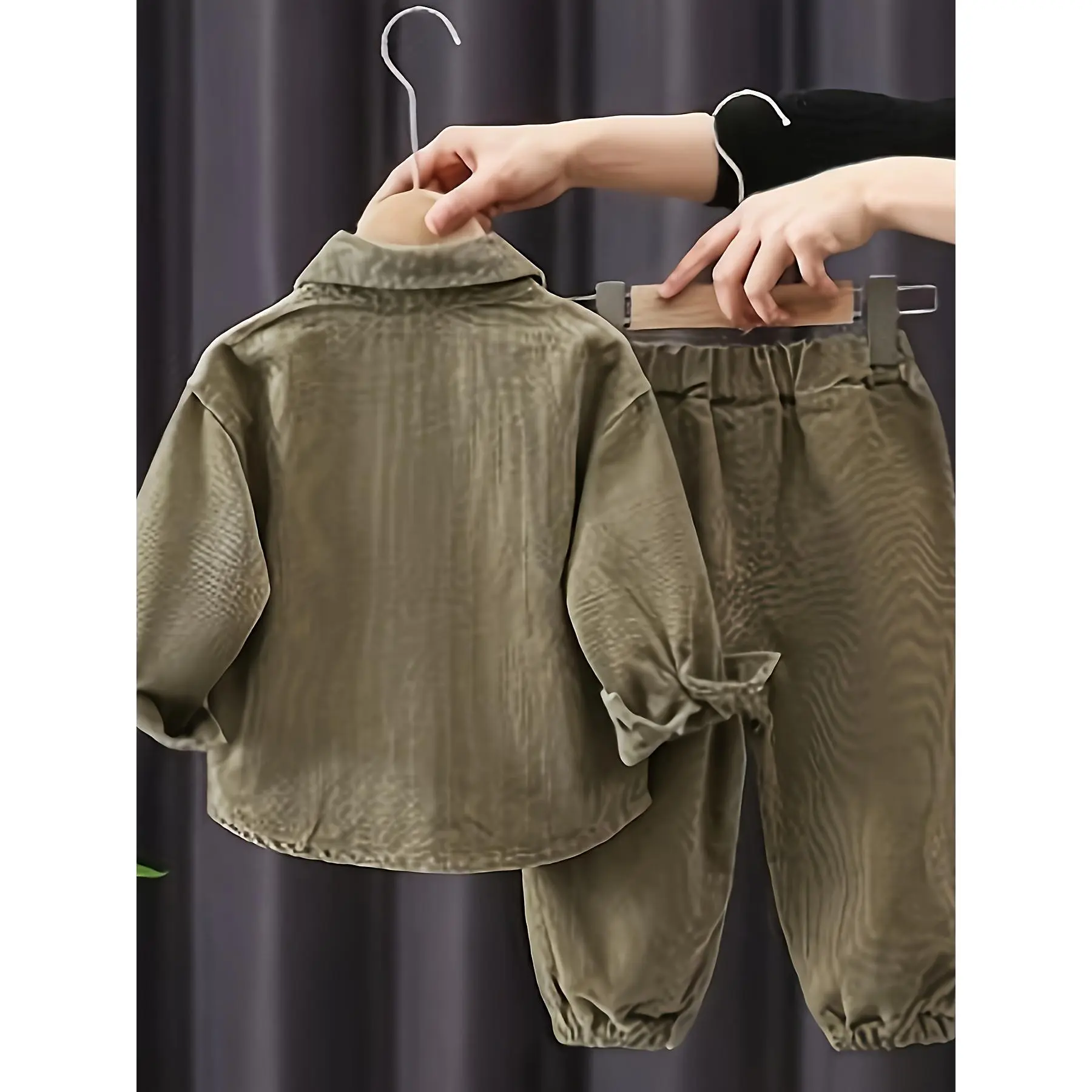 New(New)Spring New Boys' Letter Corduroy Long Sleeve Set, Autumn Casual Turn- Collar Shirt and Pants Three-Piece Outfit, Perfect for Outdoor