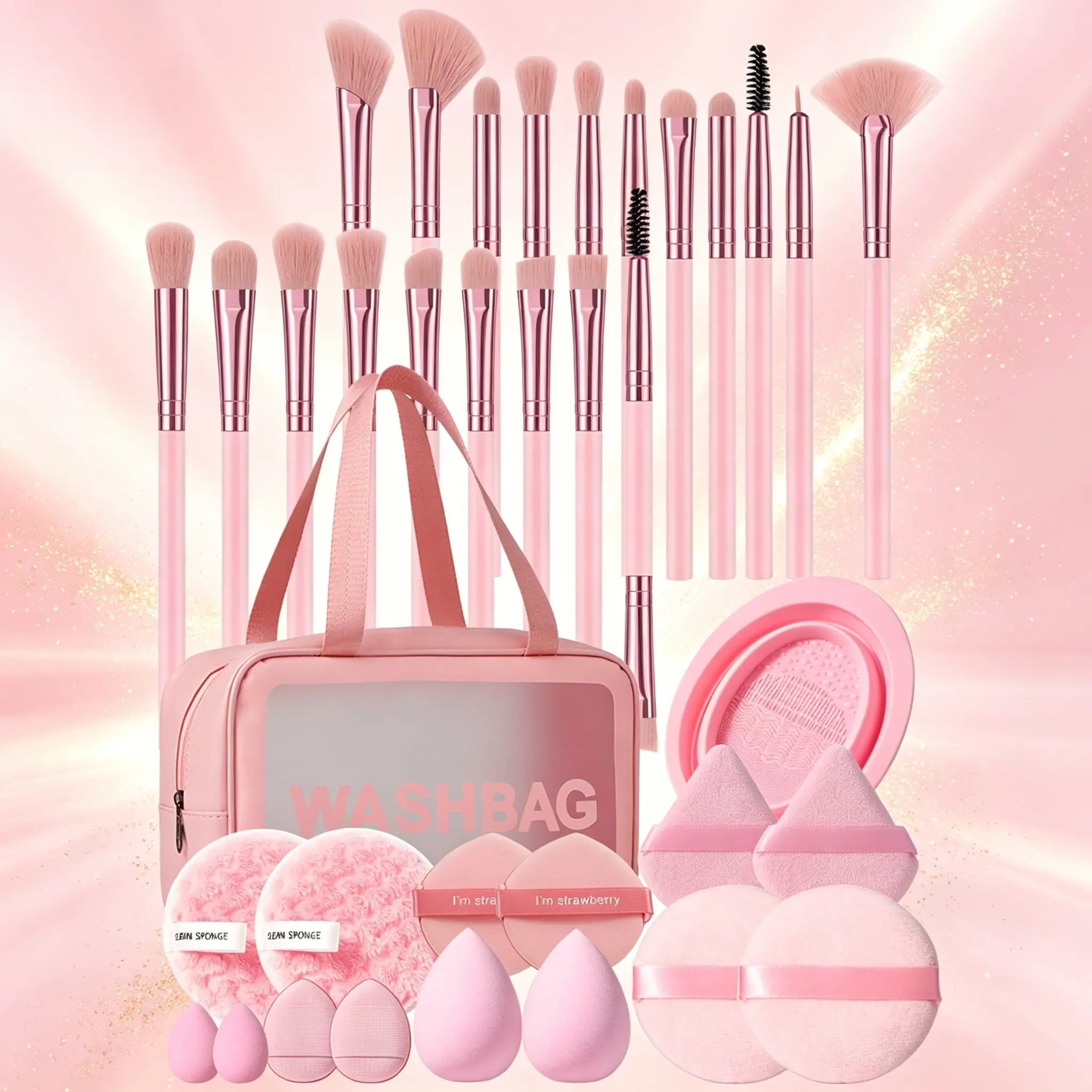 Makeup Tool Set, Including 20pcs Brush & 4 Sponge & 4 Mini Sponge & 4 Triangle Puff & 4 Mini Puff & 1 Brush Cleaning Tool & 1 Hairband & 2 Wristband, Makeup Brush Kit, Gift, Makeup Brushes Kits