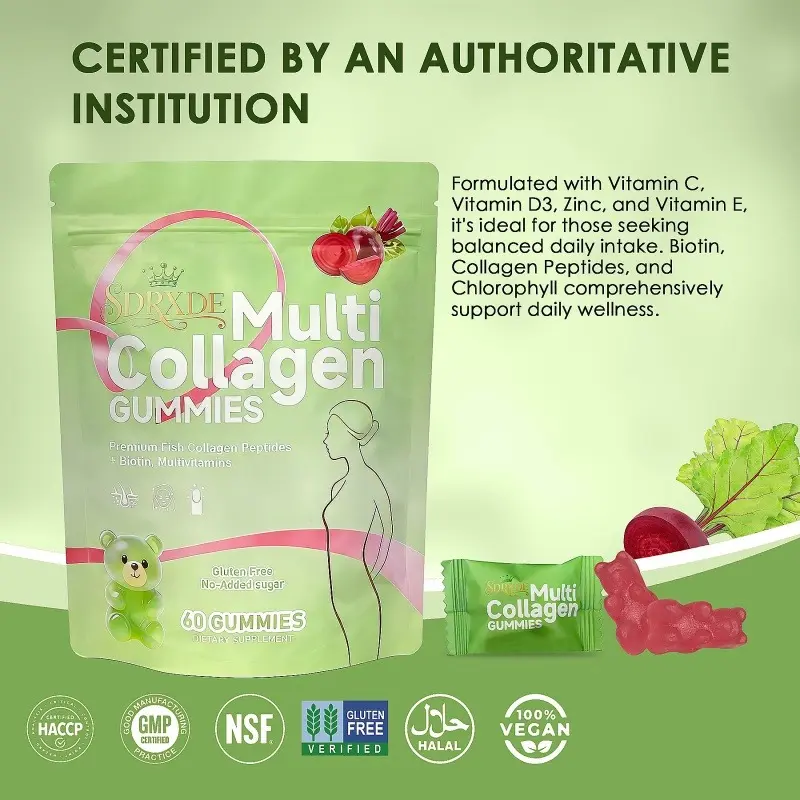 Colageno convitaminas SDRXDE Multi Collagen Gummies, 60 Count - Premium Fish Collagen Peptides + Biotin & Multivitamins, Gluten Free, No Added Sugar, Vegan Blend for Skin, Hair & Nail Health Support-Premium formula Advanced blend High potency blood vessel