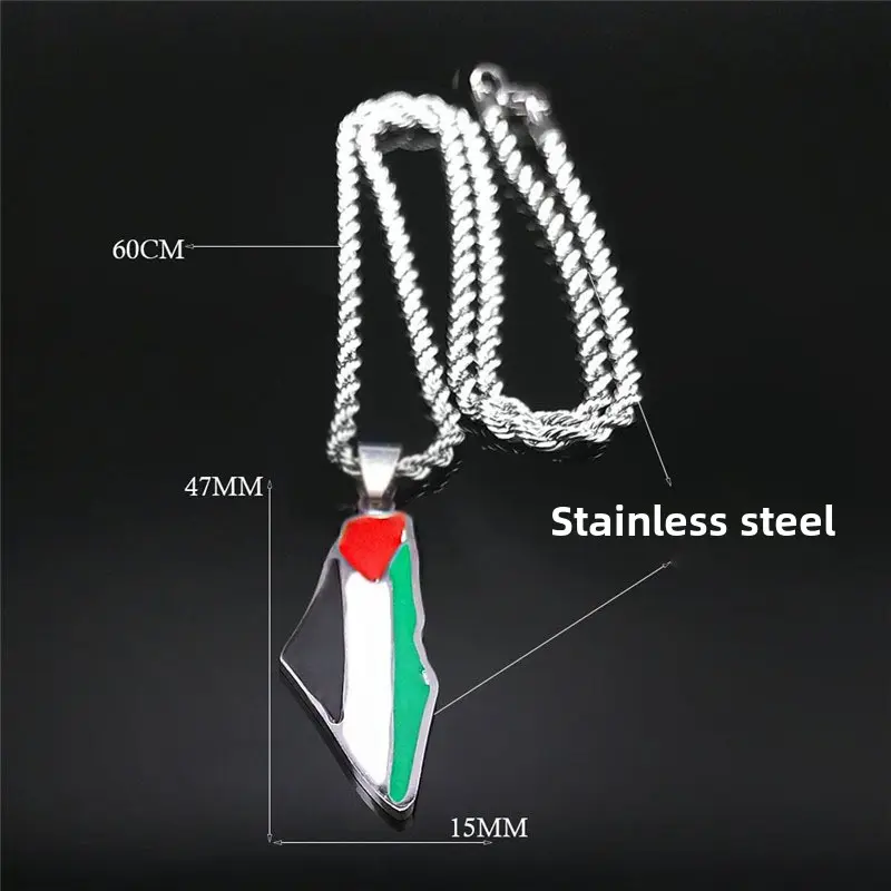 ·Unique Enamel Palestine Map Design: Features a detailed map-shaped pendant with vibrant Palestine flag colors, crafted with high-quality enamel for long-lasting color retention.