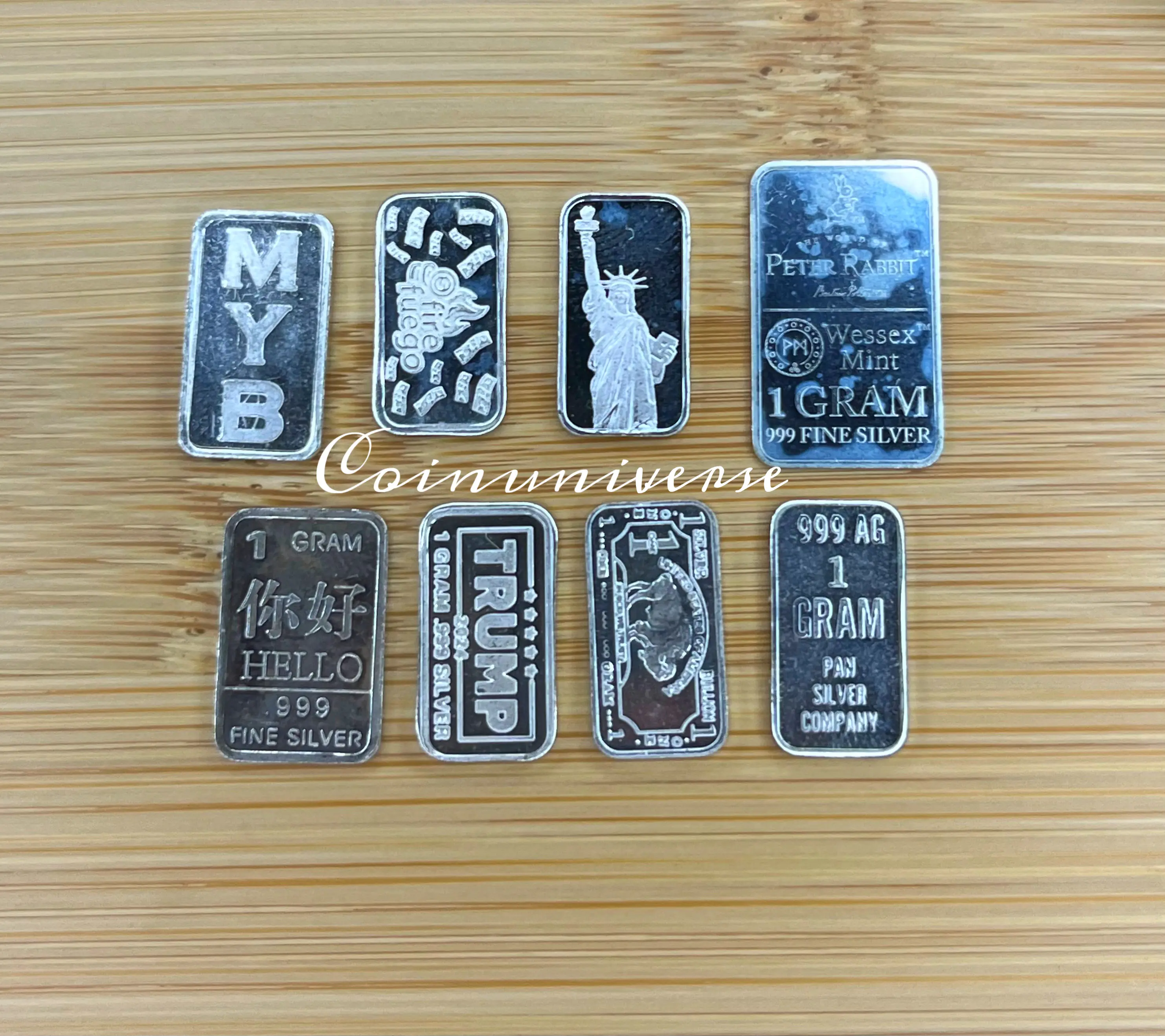 1. These designs can be branded with different images or words on each silver gram. The 1 silver gram bars/rounds are made out of .999 silver, so they may show signs of having milk spotting or "cloudiness" appear.