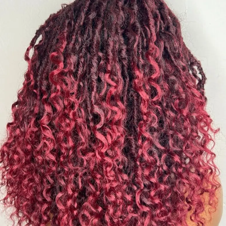 16” Hand-Tied Full Lace Knotless Braided Wig – Goddess Box Braids with Curly Tips (Burgundy, Glueless)”