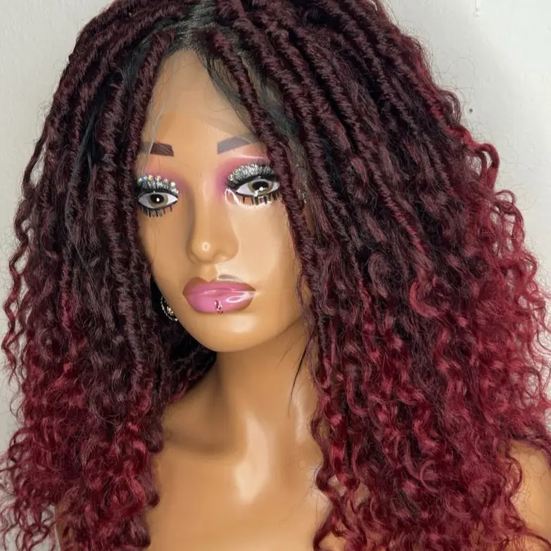 Twist Braided Wigs Knotless Synthetic Full Lace Wigs Crochet Dreadlocks Wig with Curly Hair