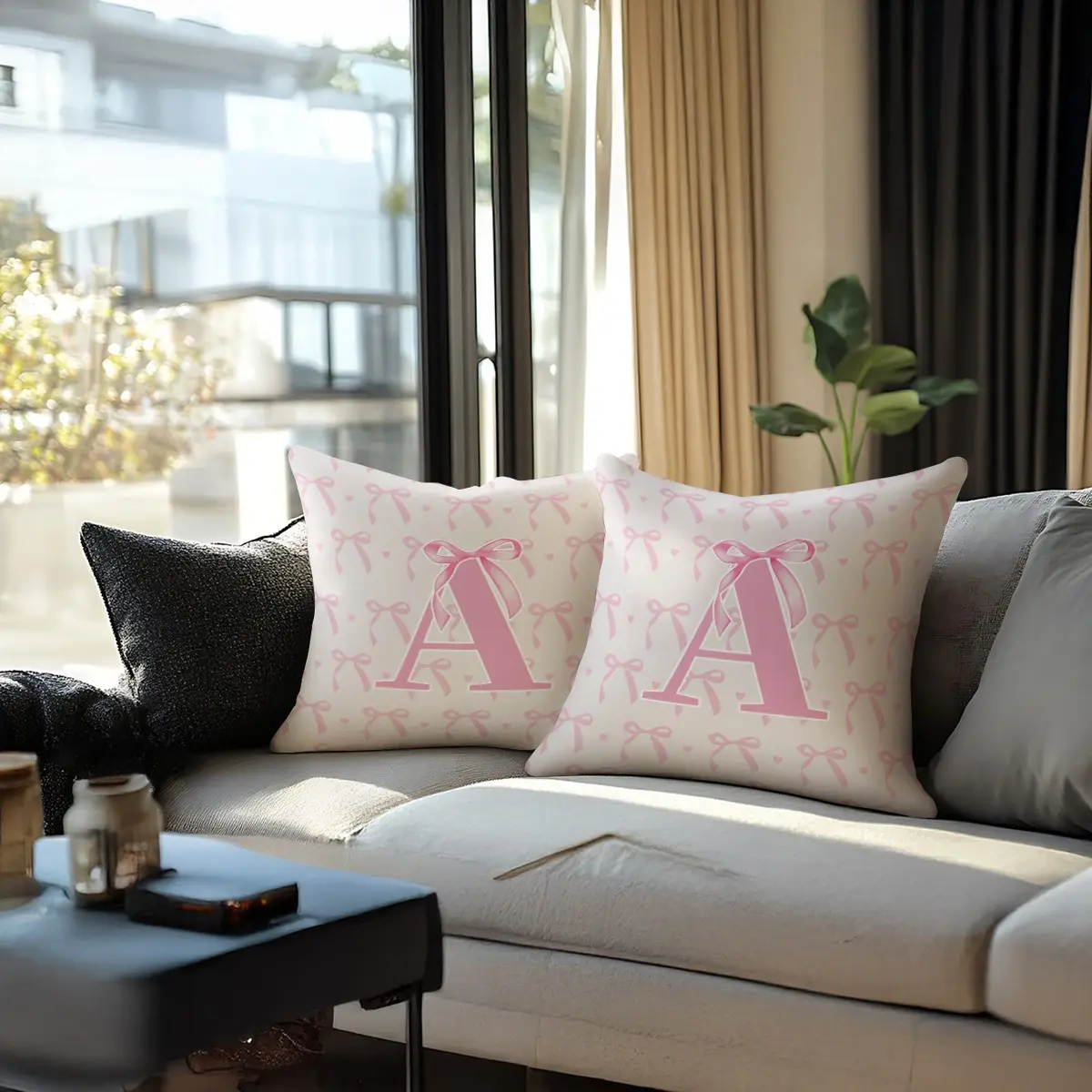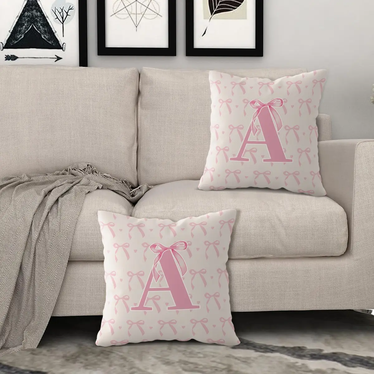 Pink Romantic Ballet Bow Full Alphabet Initial Throw Pillow with Insert, Coquette Aesthetic Decorative Pillow for Sofa, Bay Window, Patio, Cafe, All Season Use, Back Support Cushion, Ideal Housewarming Birthday Christmas Gift