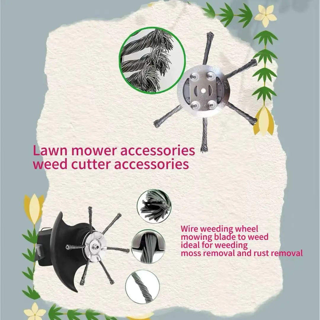 ·Wide Application Scenarios: Ideal for weeding in lawns, gardens, orchards, driveways, and sidewalks, as well as rust removal and surface cleaning. It is the perfect replacement accessory for small lithium battery trimmers, suitable for both household and professional gardening use.