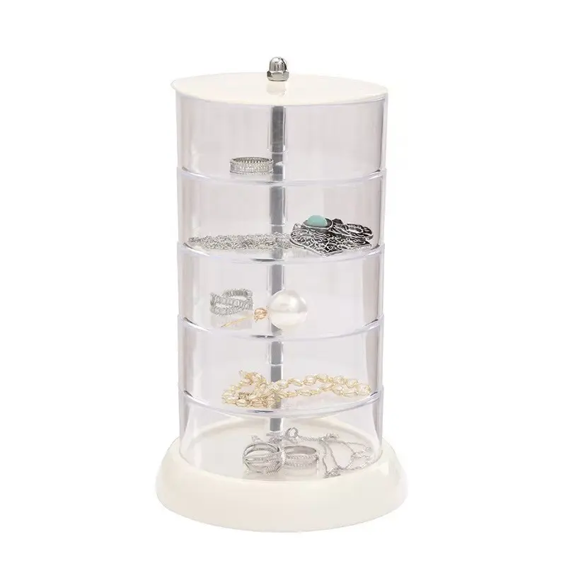 Transparent Jewelry Box for Women, Lipstick Organizer, Small Items Storage, Earrings Pins Holder, Rotating Sorting Box
