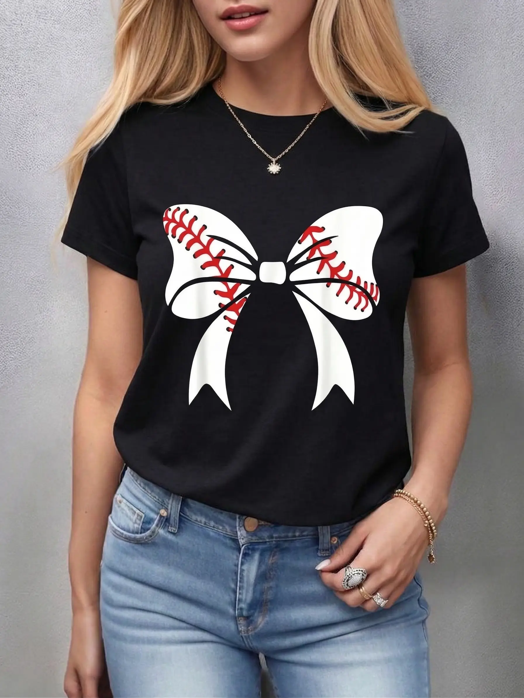 Baseball Mama Shirt Bow Baseball Mom Gift Mothers Day T-Shirt for Women