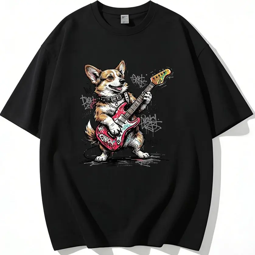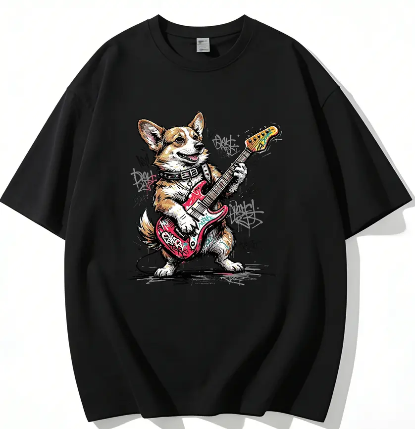 ·Bold Black Tee: Maximum edge. Features the full-color rockin‘ corgi graphic. Ideal for concerts night outs and streetwear fits.