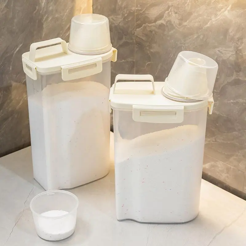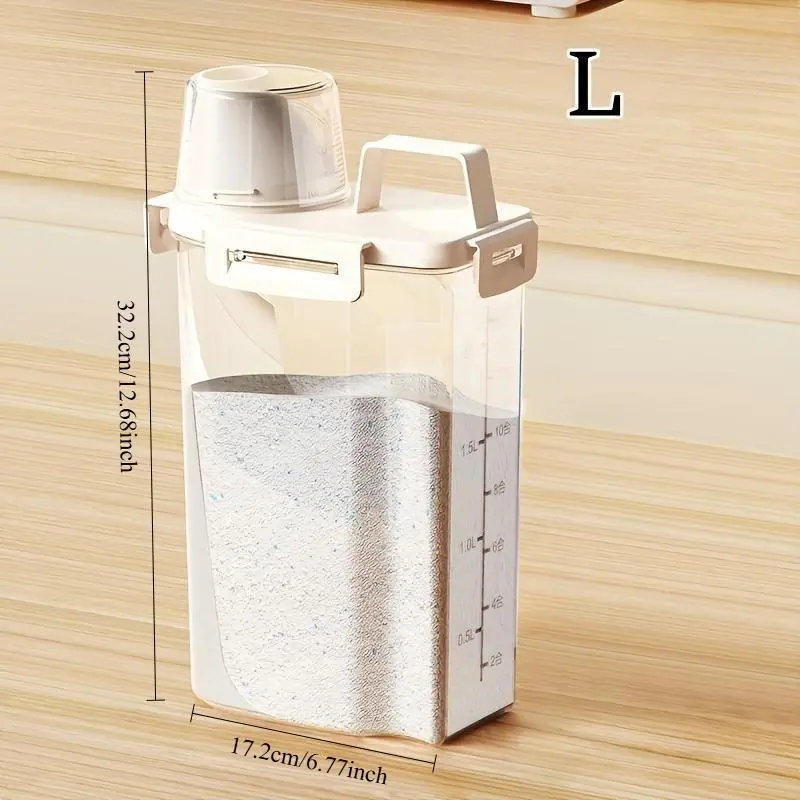 Airtight jar, a transparent laundry detergent container with a measuring cup lid - large capacity airtight dispenser for home use
