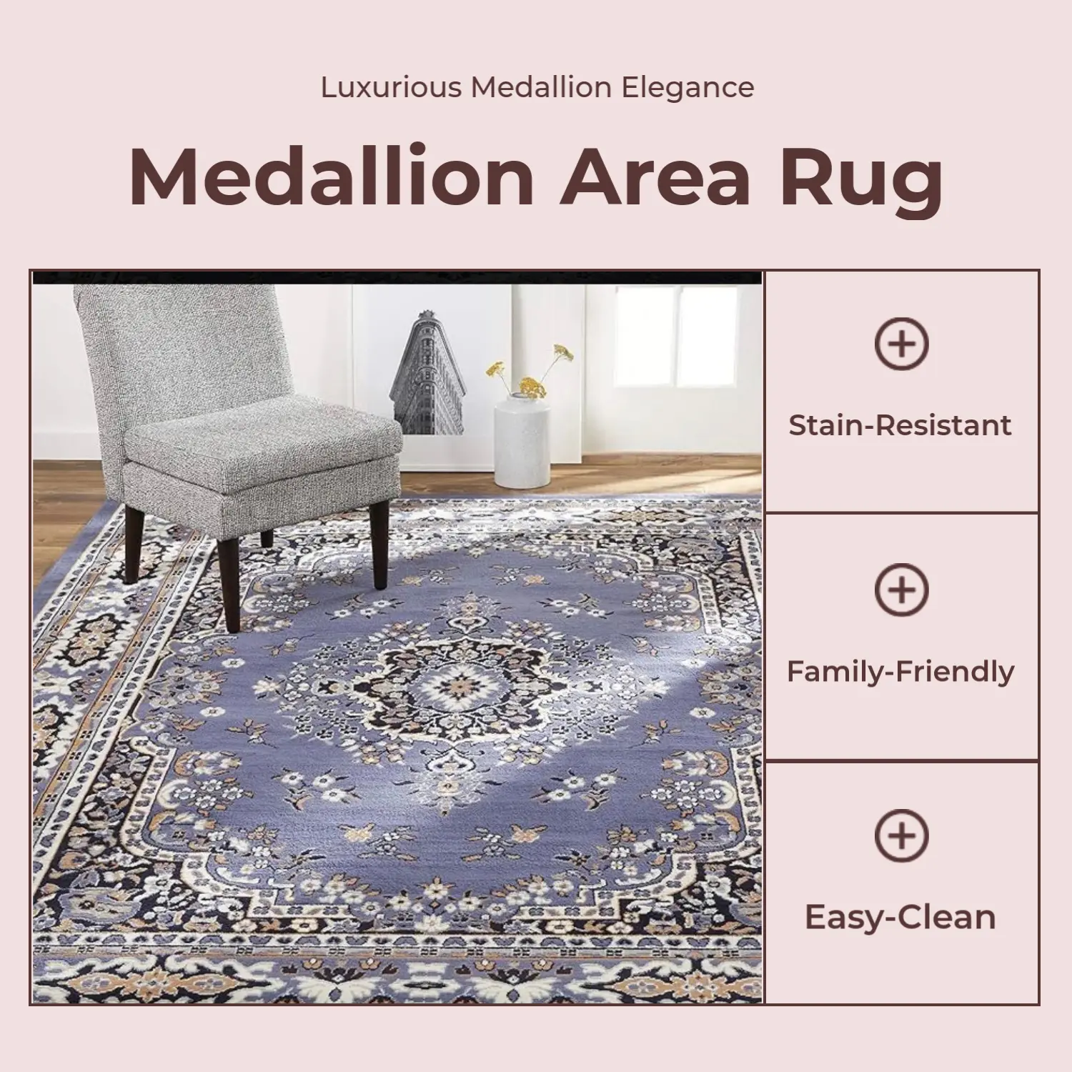Luxury Medallion Area Rug – Traditional Aesthetic & Modern Comfort – Non-Shedding & Durable (Periwinkle Blue/Ivory)