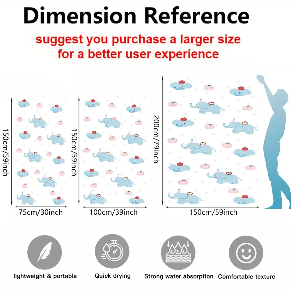 Cartoon Baby Elephant Beach Towel, Cute Printed Design, Lightweight and Quick-Drying Pool Towel, Suitable for Young Children and Teens for Poolside, Vacation, Travel, and Outdoor Summer Use Bath Towel Blanket