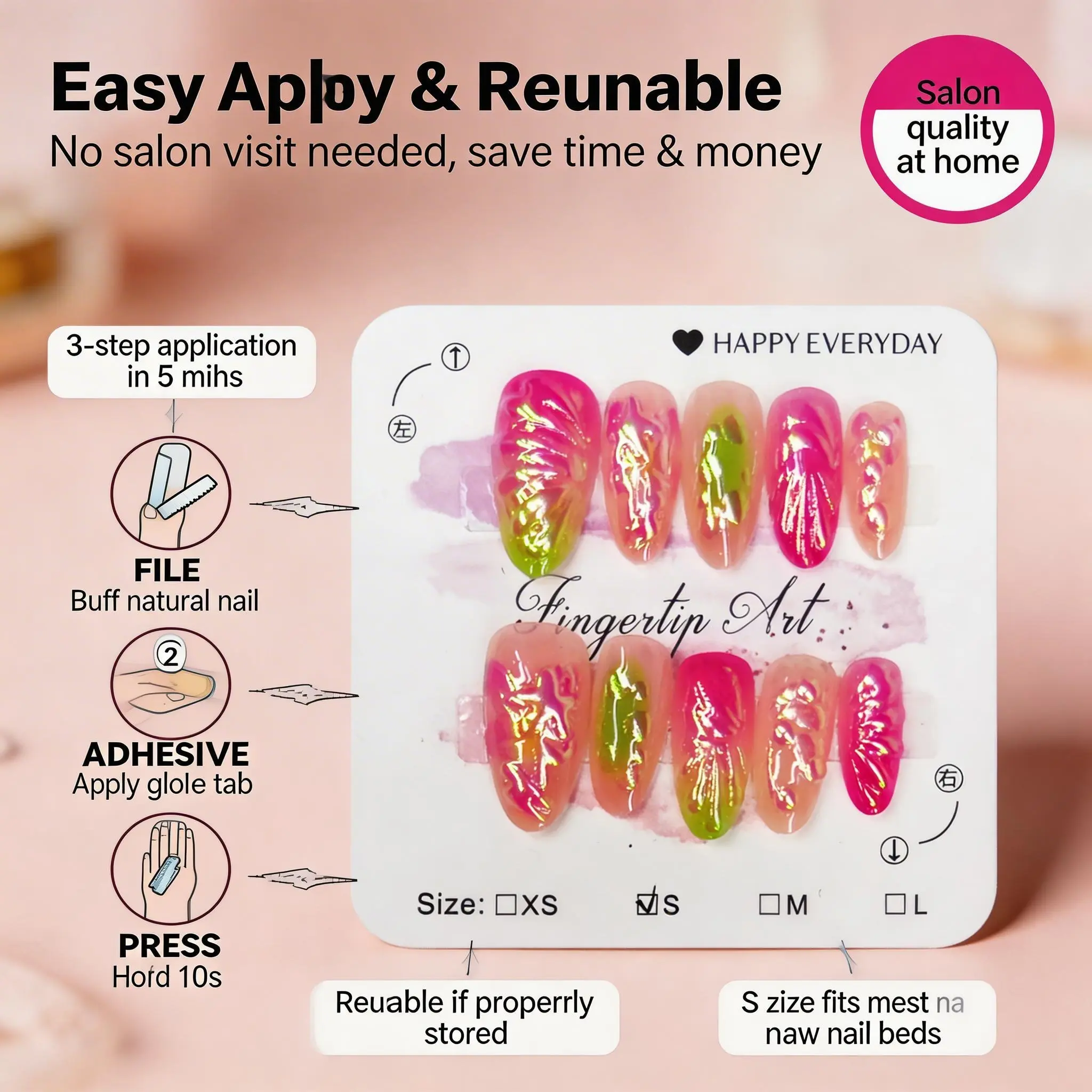 Wearable nail tips, slightly fluorescent, 10 pieces, complete set includes tools