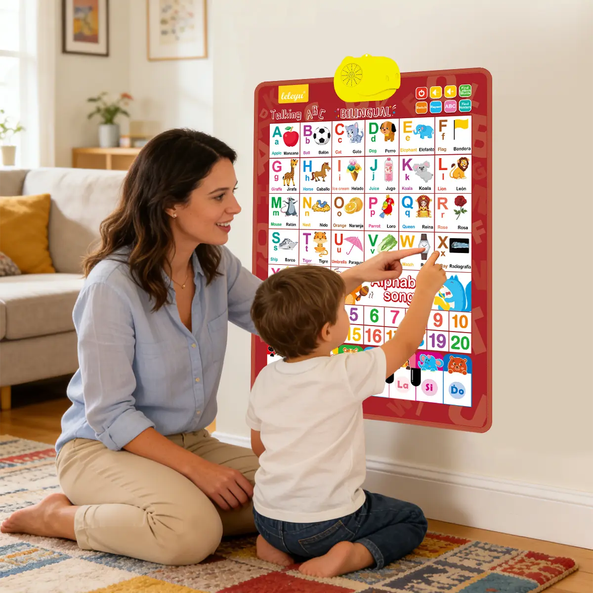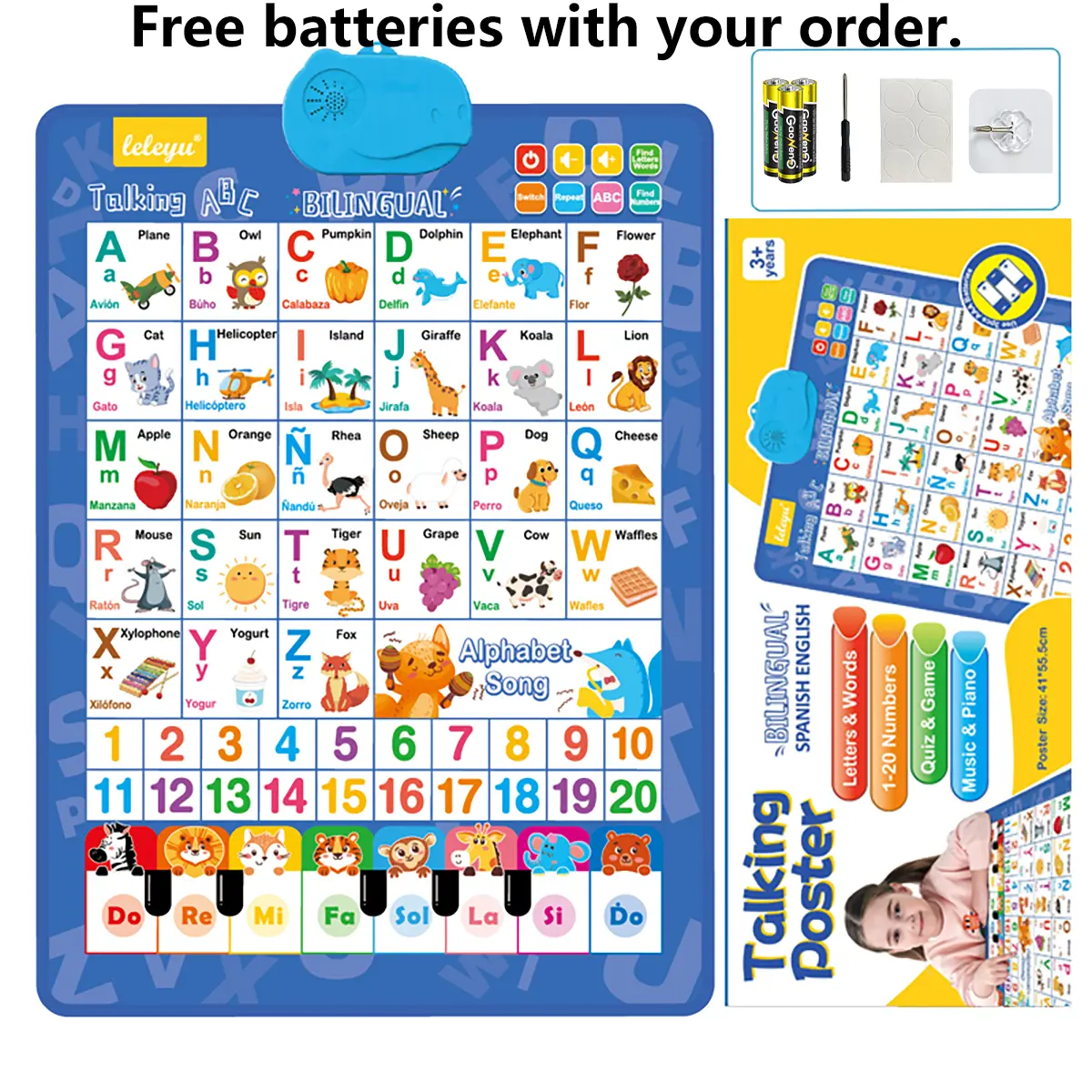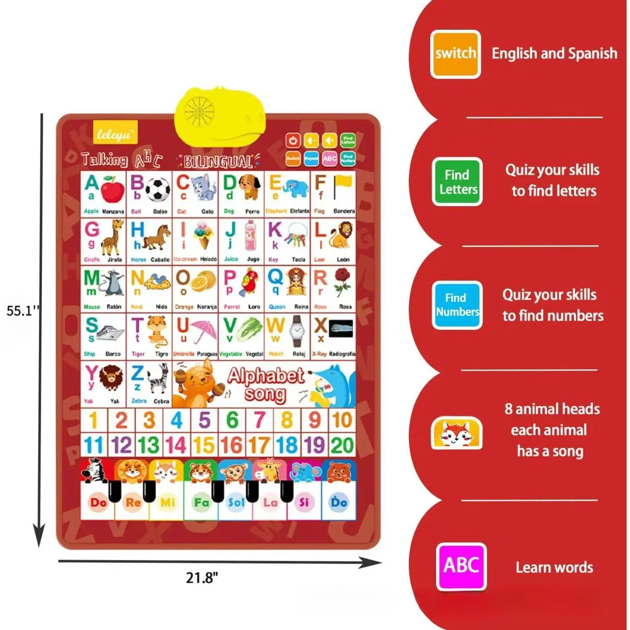 Spanish English Bilingual Audio Early Education Wall Chart Finger Piano Cognitive Pure English Sound Early Education Wall Chart Educational Toys Point Reading Book Educational Equipment Early Education Companion Reading Machine