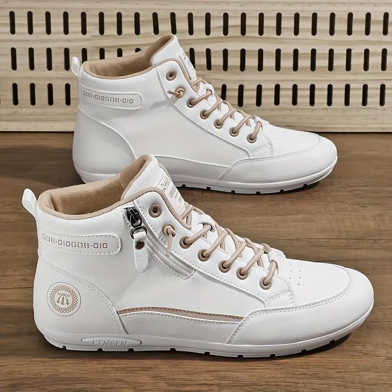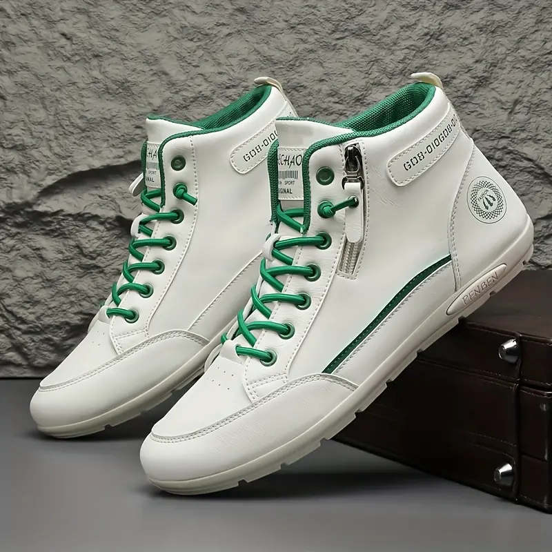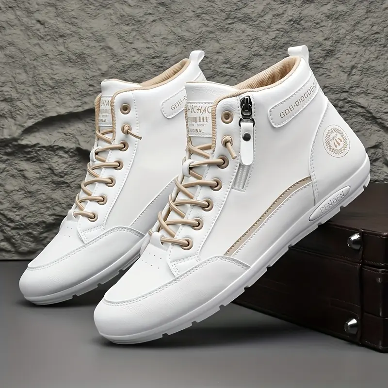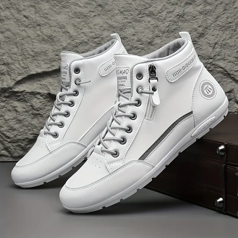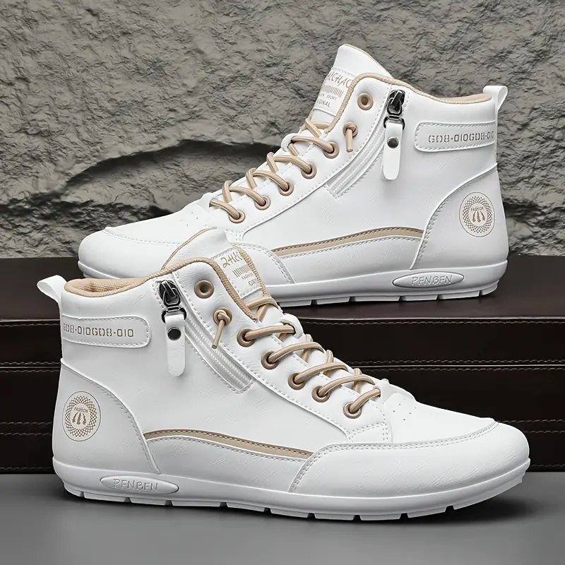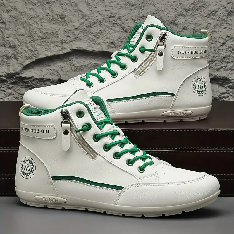 Men's High-Top Shoes Comfortable Durable Fashionable with Side Zippers Rubber Soles for Sports Running Trendy Walking Sneaker Closed Trainer Athletic Footwear