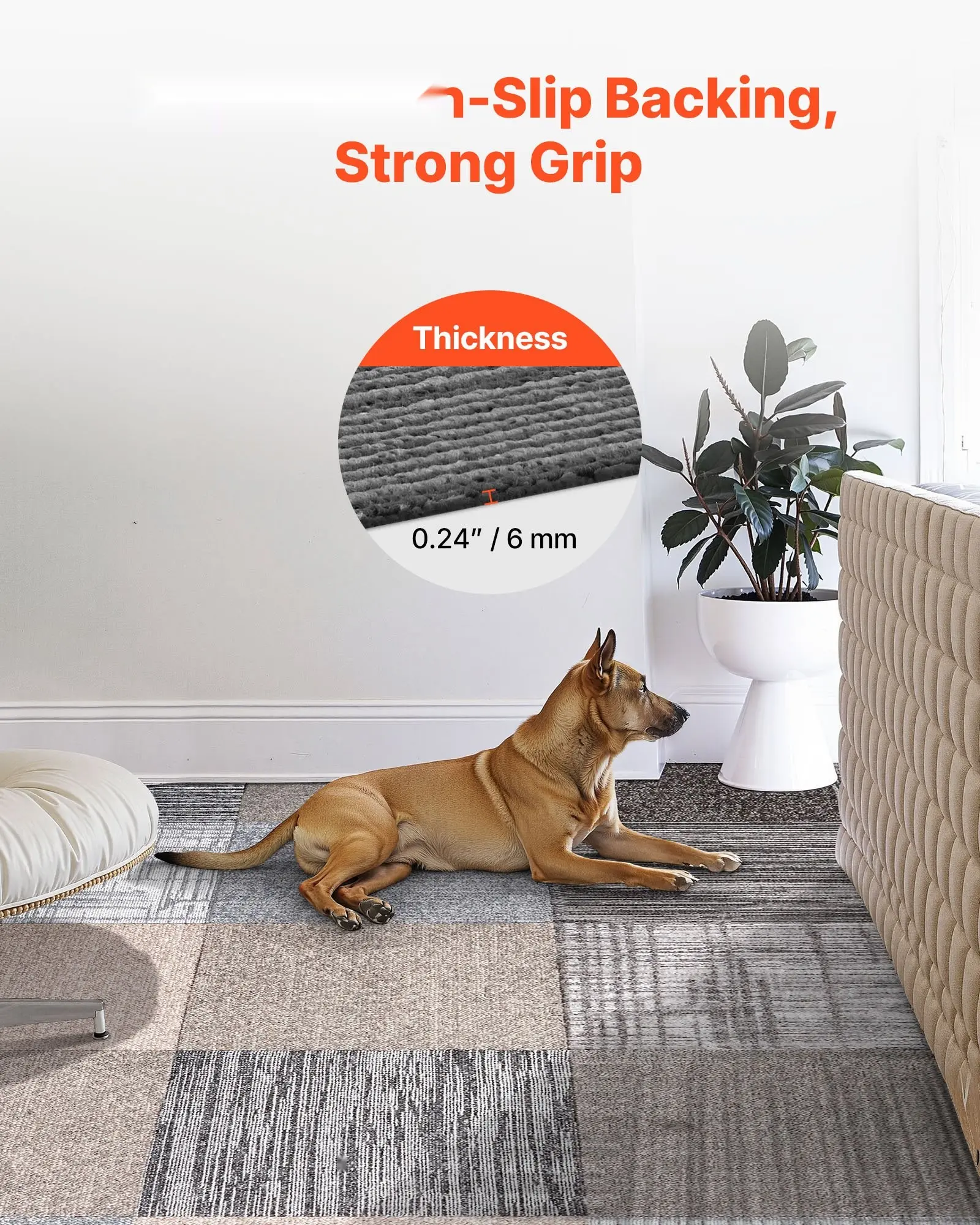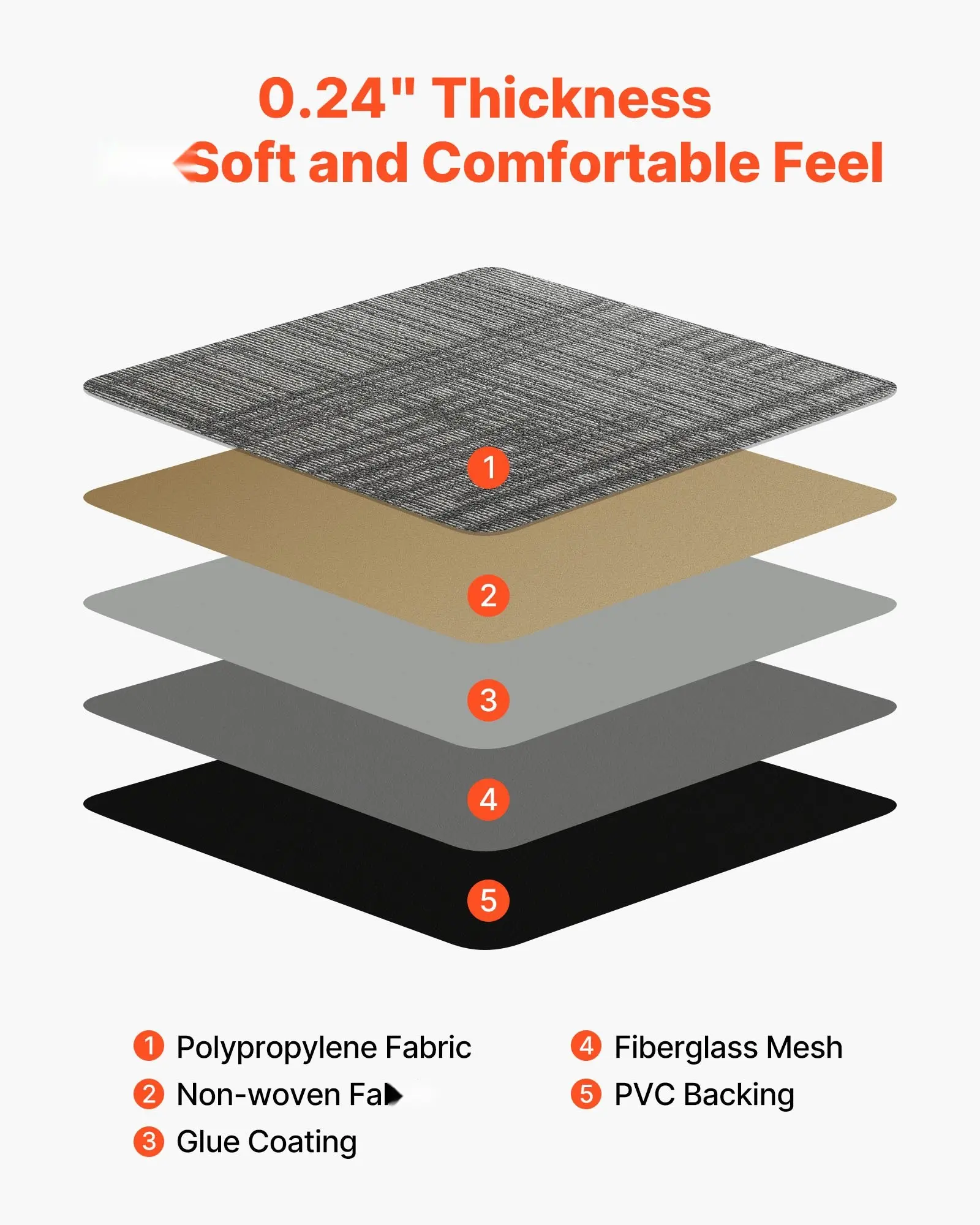·Anti-Slip & Long-lasting: Designed with an anti-slip base, these carpet tiles are built for stability, strength, and abrasion resistance, ideal for high-traffic areas like offices, hallways, or rental spaces