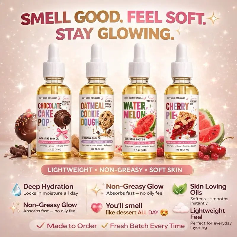 ✨ Experience the magic of our Hydrating Body Oil! This non-greasy perfume oil is designed to leave your skin soft and smooth. Perfect for those who love a dessert-like scent, it transforms your skin into a canvas of glow. Apply it daily for a radiant finish.