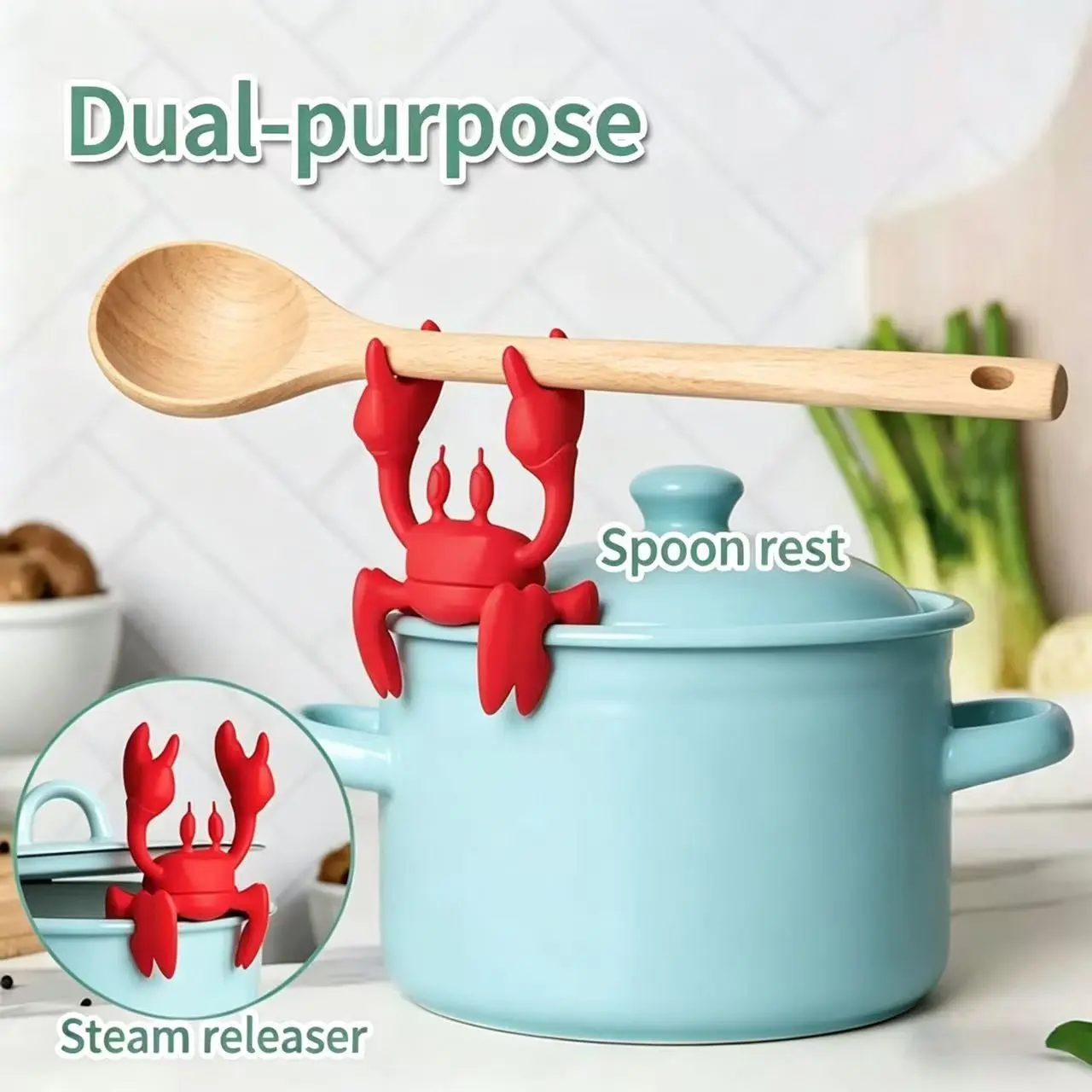 This spoon holder is a kitchen essential and deserves high praise! Made from 100% food-grade, BPA-free silicone, it's durable, rust-proof, and shatterproof. Not only is it a multi-functional tool, but it also functions as a steam releaser; its base firmly grips the lid, keeping it stable even when holding steaming soup or boiling liquids, preventing wobbling, discoloration, or breakage. Cleaning is also incredibly easy; it can be hand-washed or dishwasher safe. Add fun to your daily cooking – the Little Crab "Red" transforms the tedious food preparation process into an enjoyable experience, filling your kitchen with joy every day.