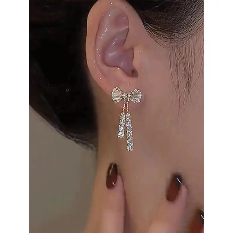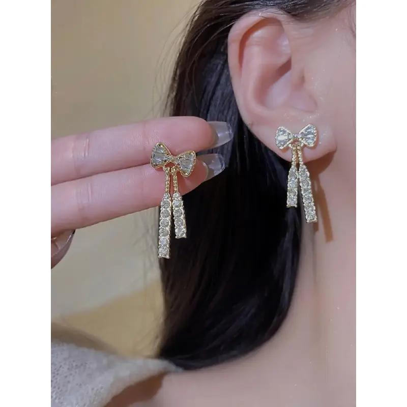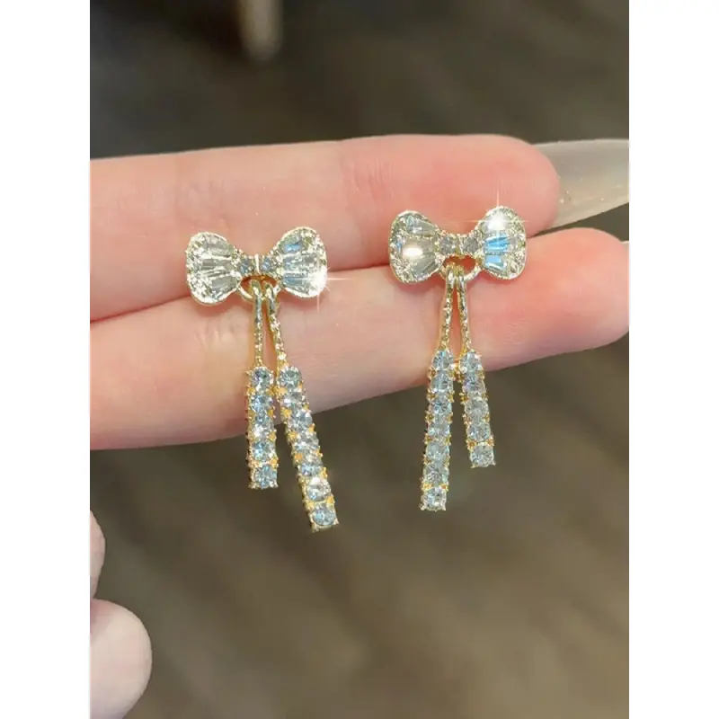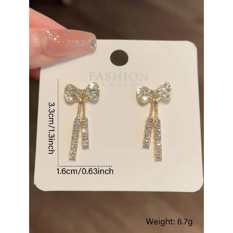Bow Decor Dangle Earrings, High Quality Earrings, Elegant Rhinestone Decor Drop Earrings for Women, Fashion Jewelry for Party, Daily Birthday Gift