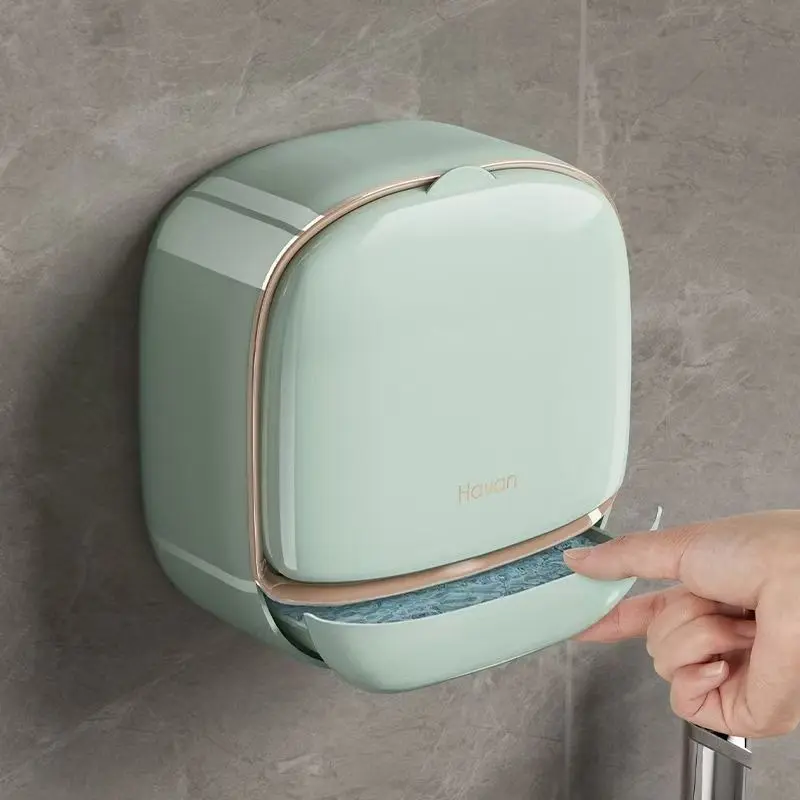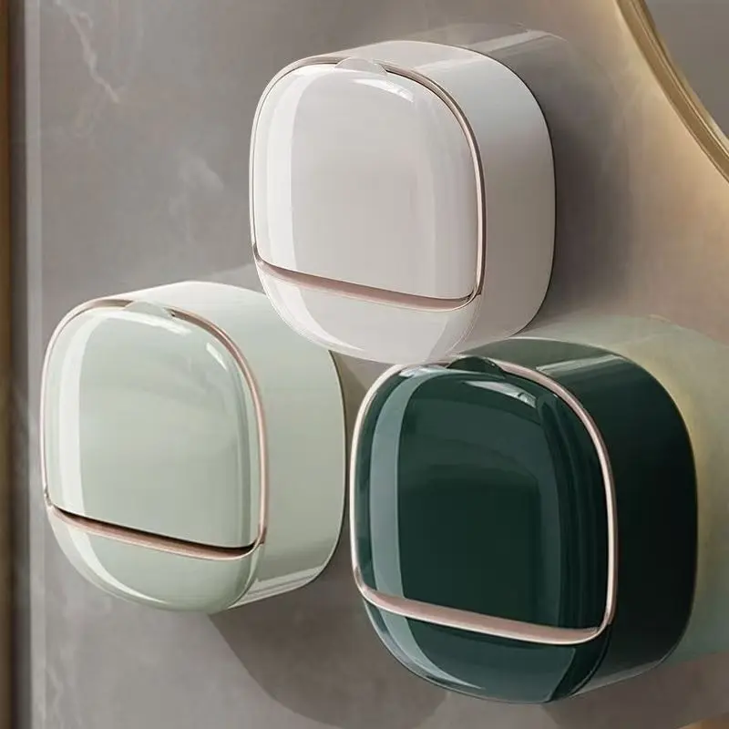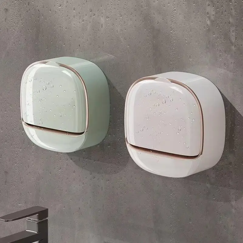 1pc Bathroom Soap Dish Wall Mounted No-Drill Drainage Box, Bath Organizer Storage Rack for Shower Room Essentials, Bathroom Accessories, Soap Dish Holder