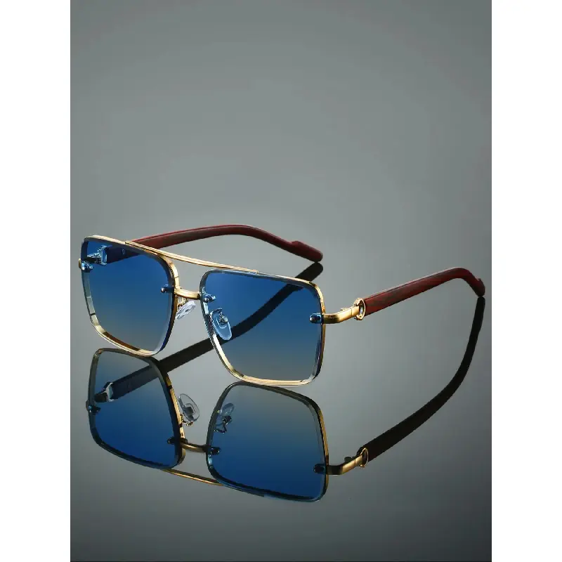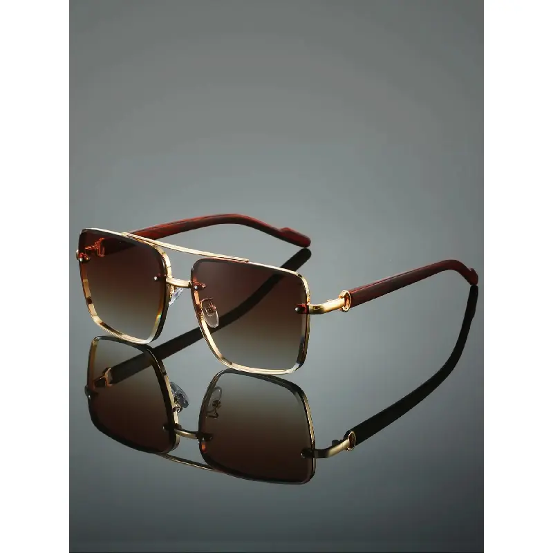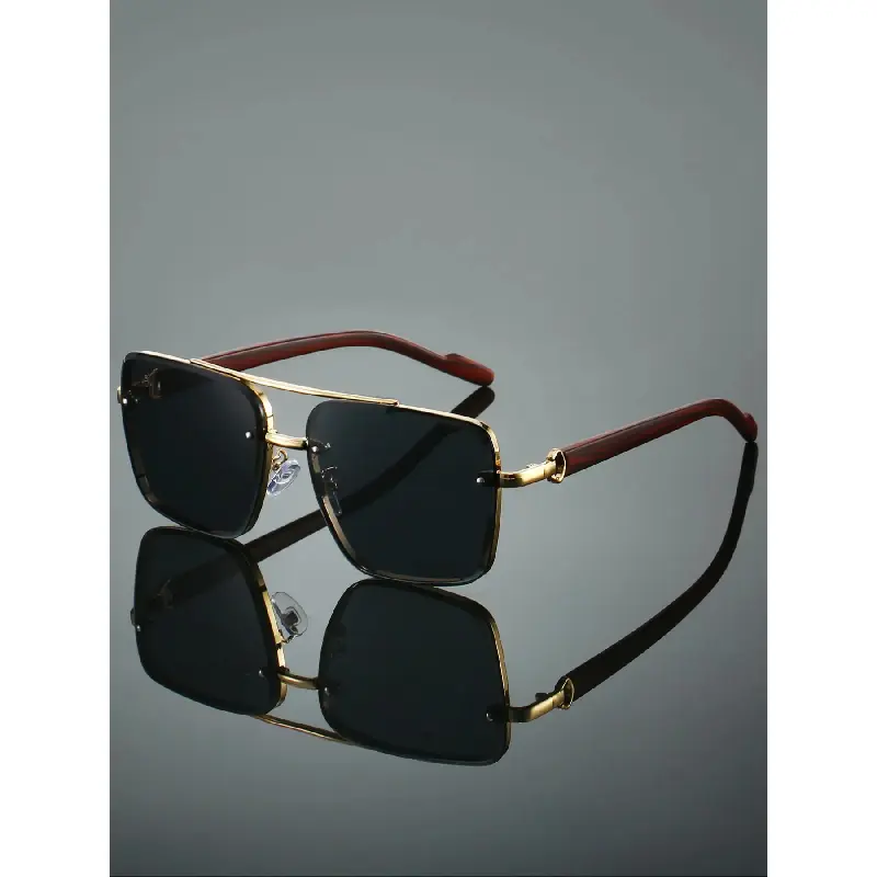 Men's New Full Frame Square Glasses, Retro Dual Bridge Design, Imitation Wood Texture Temples, Metal Frame, Classic Fashion Decorative Eyewear, Square Frames