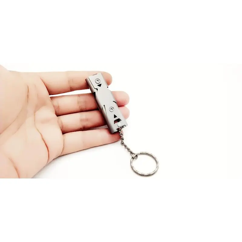 Stay prepared for any emergency with this premium dual-tube stainless steel survival whistle! Crafted from durable, rust-resistant stainless steel, it delivers an ultra-loud, high-frequency 120dB blast that cuts through wind, noise, and distance for reliable emergency signaling. The dual-tube design produces a penetrating, far-reaching sound perfect for hiking, camping, mountaineering, and earthquake rescue, ensuring you can be heard in critical situations. Compact and lightweight, it attaches easily to keychains, backpacks, or survival kits with the included chain and ring, making it a portable, essential EDC tool. Built to last, this emergency whistle is a must-have for outdoor enthusiasts, adventurers, and anyone prioritizing personal safety.