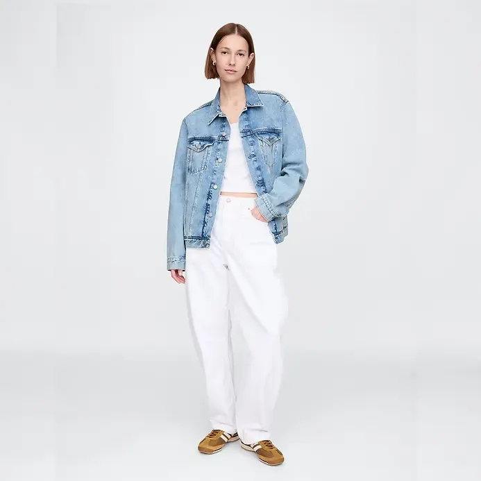 Responsibly Made: This denim jacket is made with 5% recycled cotton and is part of our Washwell program, which uses at least 20% less water as compared with conventional wash methods. We’ve saved over a billion liters of water through Washwell since 2016.