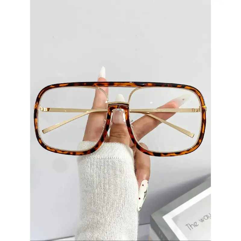 Unisex Street Style Tortoise Pattern Flat Top Frame Glasses, Trendy Casual Glasses for Everyday Use, Fashion Accessories for Outdoor Activities