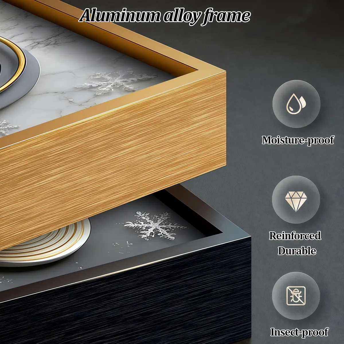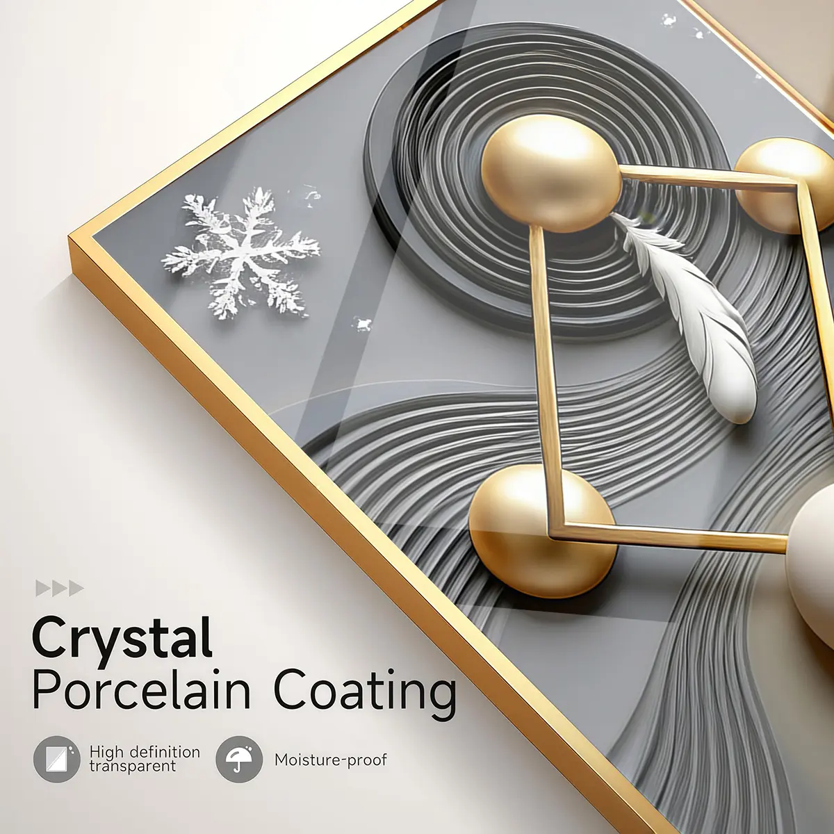 3 Counts Aluminum Alloy Framed Painting, Modern Abstract Geometric Gold And Feather Art Pictures, Home Decoration For Living Room, Bedroom, Office, Restaurant, Hallway Wall Decor, Odorless Print Artwork, Luxury Perfect Gift For Friends And Family