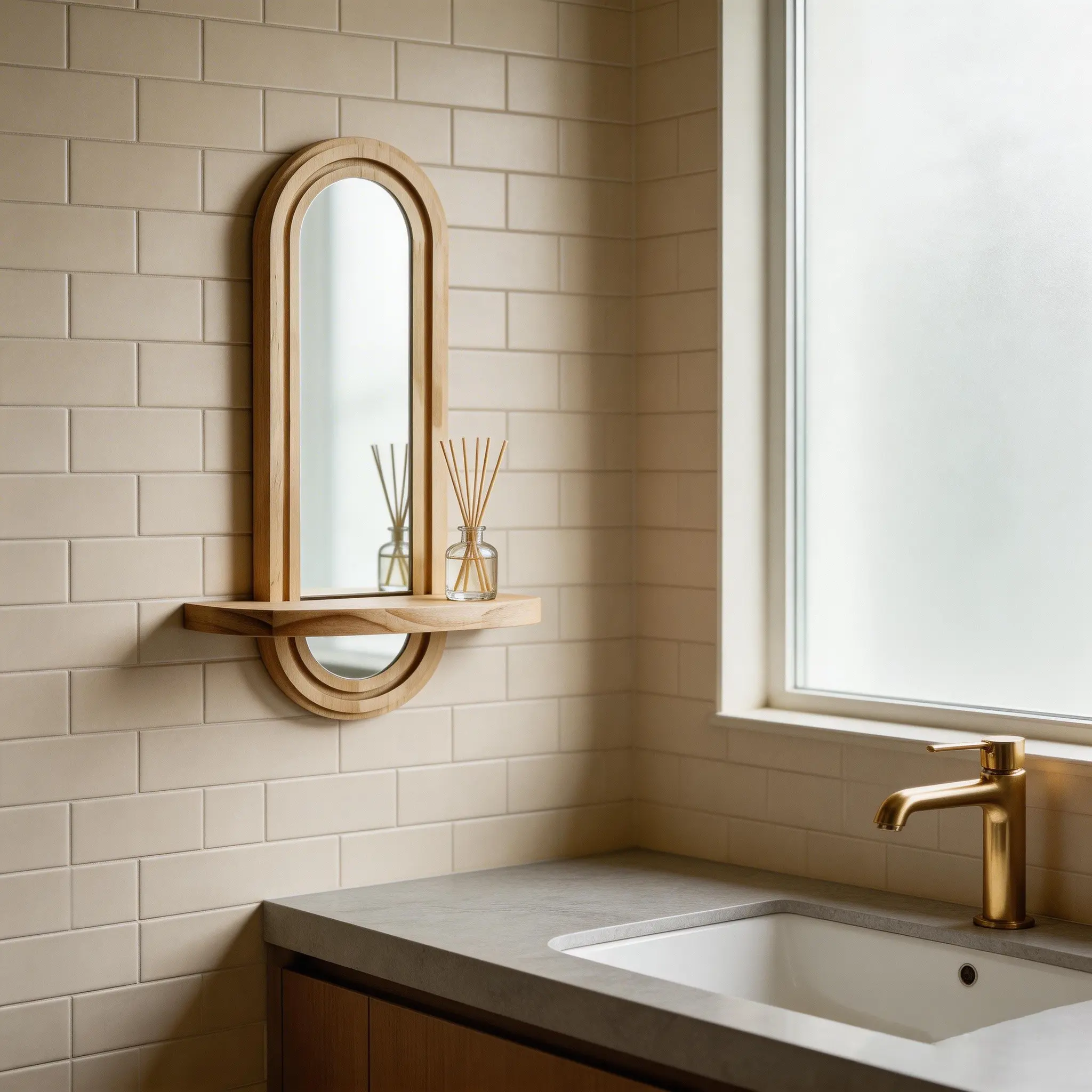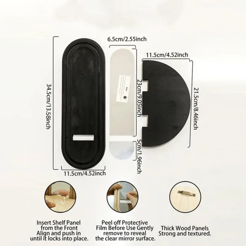 This wooden wall-mounted mirror storage rack combines decorative and practical functions, making it a treasure for enhancing the style of your home.