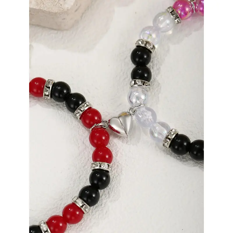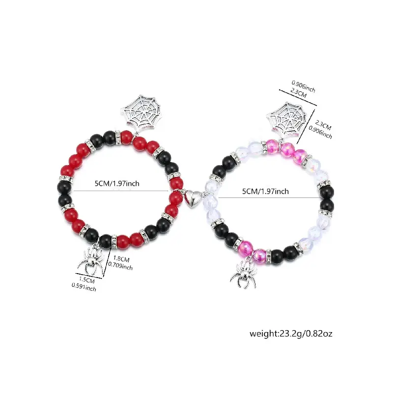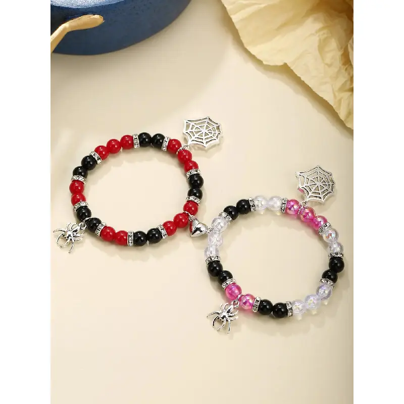 Fashion Spider & Net Design Charm Beaded Bracelet, Casual Simple Half Magnetic Heart Charm Jewelry for Party, Daily Clothing Decor Adjustable Beaded Design