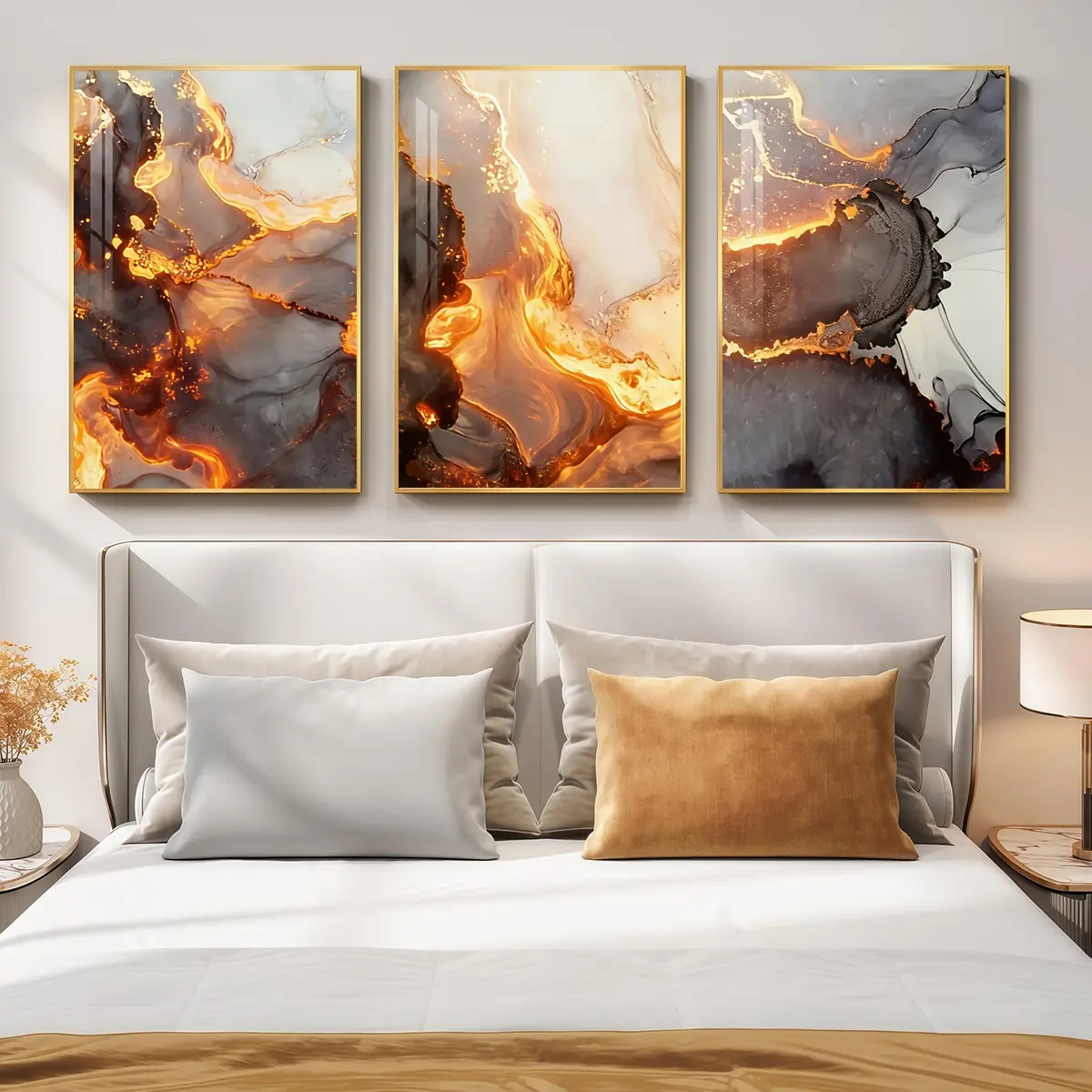 3 Counts Aluminum Alloy Framed Painting, Abstract Golden Lava Flow Pictures, Home Decoration For Living Room, Bedroom, Office, Restaurant, Hallway Wall Decor, Odorless Print Artwork, Luxury Perfect Gift For Friends And Family