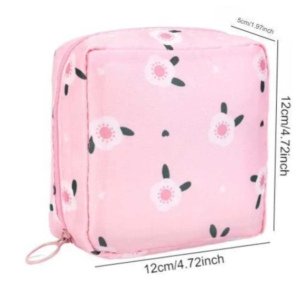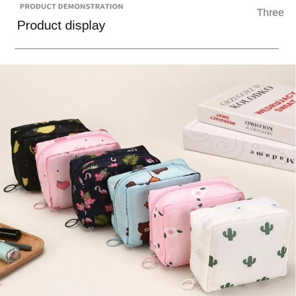Cartoon Pattern Sanitary Napkin Storage Bag, 1 Count Portable Zipper Sanitary Napkin Storage Bag, Small Storage Bag for Outdoor Travel, Organiser, Storage Organizer Bag, Space Saving Bags