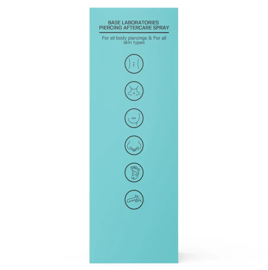 ·PIERCING SPRAY FOR PIERCING BUMPS & KELOIDS - Base Labs piercing aftercare spray. Our saline solution for piercings and skin wounds is best for sanitizing new and old piercings plus helps reduce the size of piercing bumps & keloids. Our spray can be safely used for all body and oral piercings and body modifications, including on the face, ears, tongue, cartilage, naval, nasal, lips, and nipples. Apply 2-3 sprays as needed.