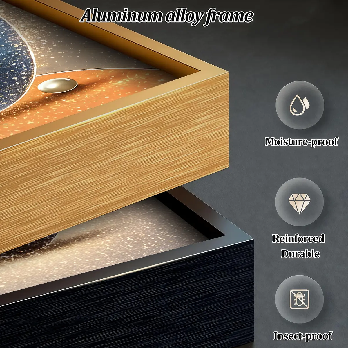 3 Counts Aluminum Alloy Framed Painting, Modern Abstract Geometric Gold And Feather Art Pictures, Home Decoration For Living Room, Bedroom, Office, Restaurant, Hallway Wall Decor, Odorless Print Artwork, Luxury Perfect Gift For Friends And Family