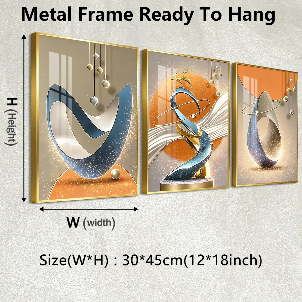 3 Counts Aluminum Alloy Framed Painting, Modern Abstract Geometric Sculpture Art Pictures, Home Decoration For Living Room, Bedroom, Office, Restaurant, Hallway Wall Decor, Odorless Print Artwork, Luxury Perfect Gift For Friends And Family