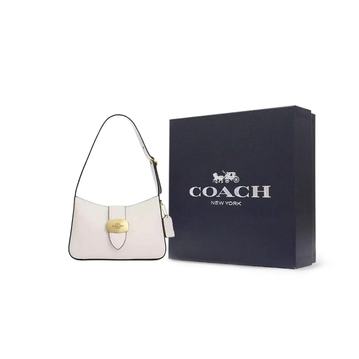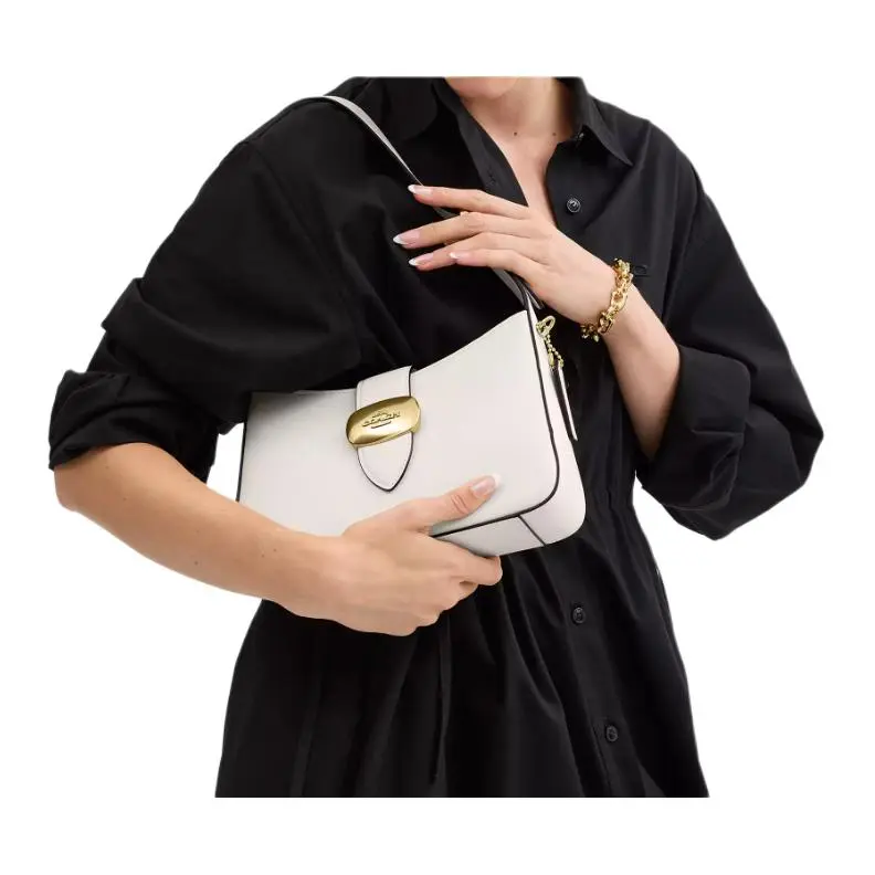 Design Concept: Clean silhouettes, balanced proportions, and subtle hardware reflect minimalist sophistication. The Eliza 25 features a structured yet soft shape, adjustable strap, and signature turn-lock closure inspired by vintage COACH archives.